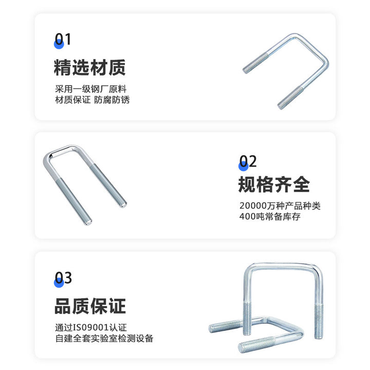 Blue and white zinc plated right angle U-shaped bolt U-shaped screw pipe clamp pipe clamp fixed buckle M6M8M10M12