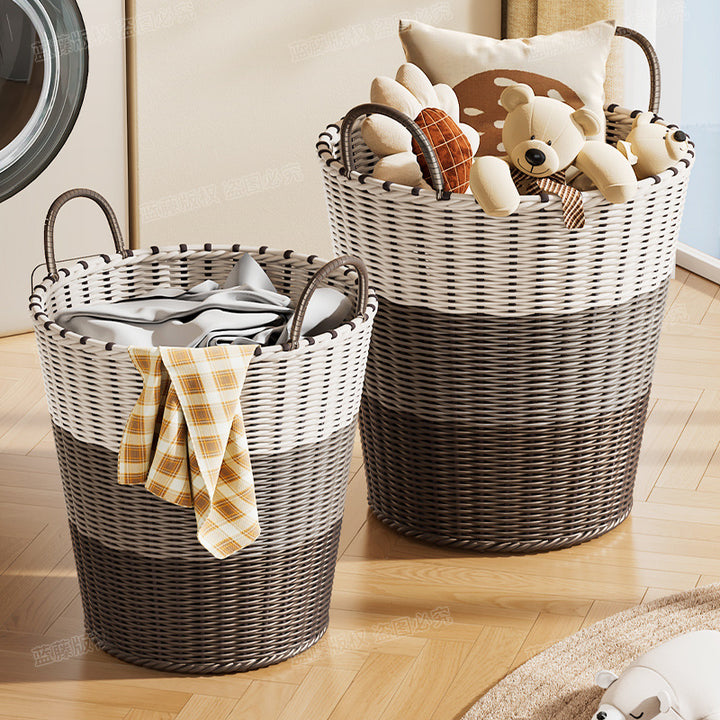 Small, woven laundry basket gray brown and white · height 22cm, Medium, woven laundry basket gray brown and white · height 34cm, Large, woven dirty laundry basket gray brown and white · height 38cm, Large size, woven dirty laundry basket gray brown and white · height 42cm, Oversized, woven dirty laundry basket gray brown and white · height 45cm |