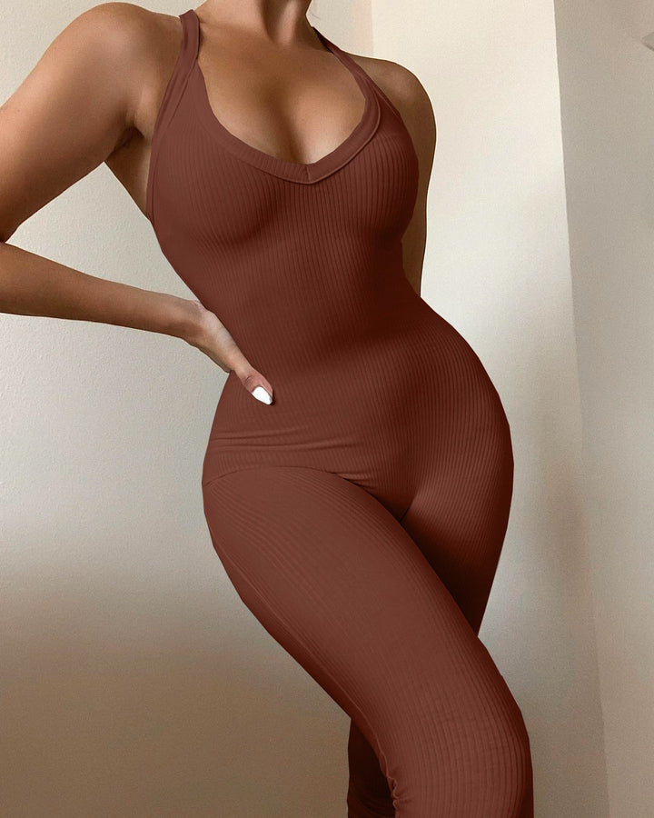 BN172 European and American women's clothing, new spring and summer models, solid color high elastic pit strip fabric, casual suspender jumpsuit