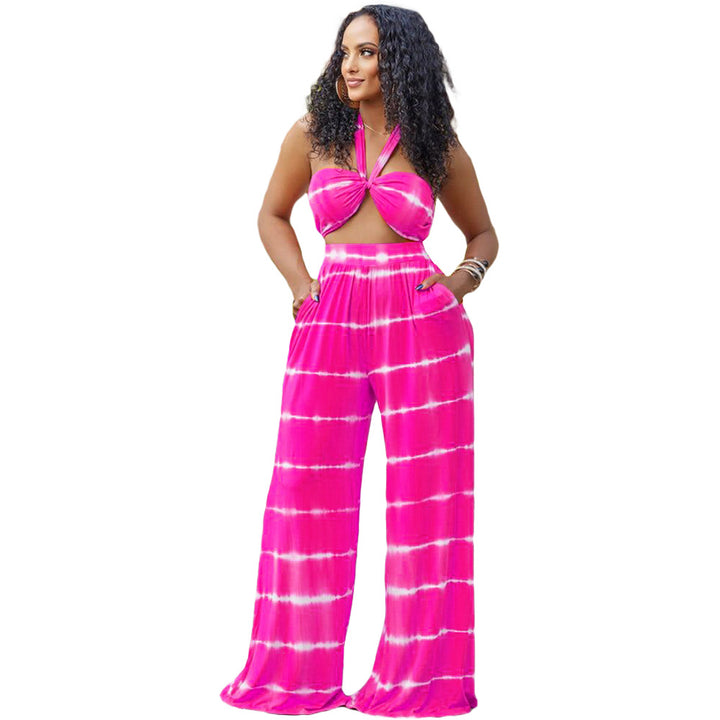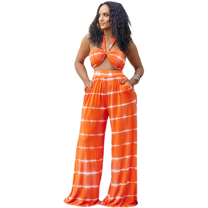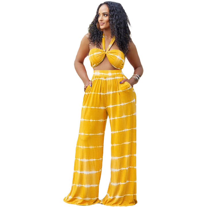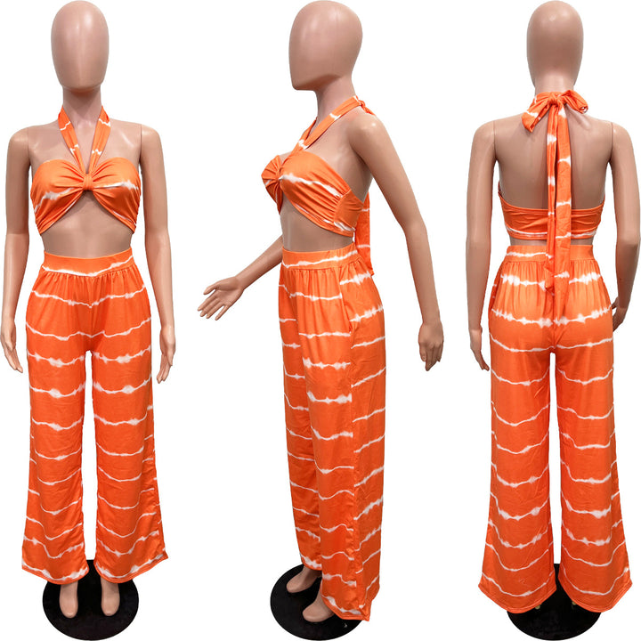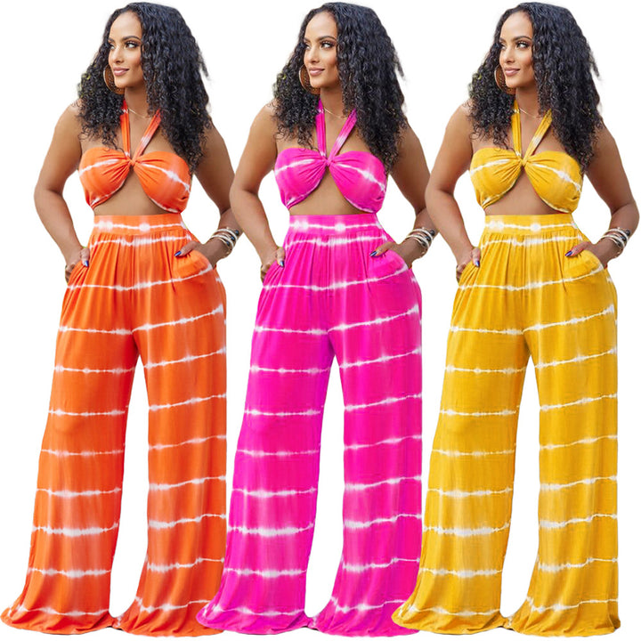 BN298 Cross-border European and American women's clothing, loose, pocket, stripe printing, abraded fabric, pants set