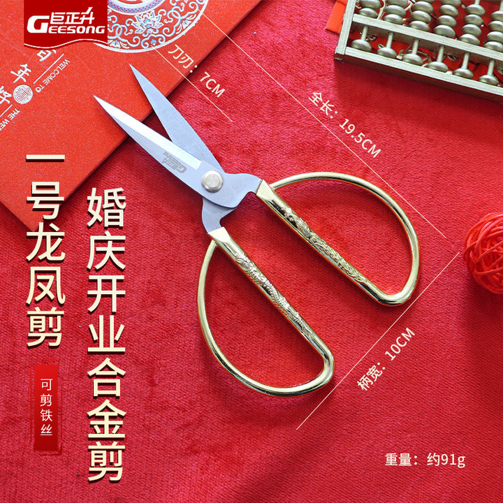 Boutique Zherong Longfeng alloy scissors household large scissors kitchen opening ribbon cutting strong civilian scissors sharp and durable