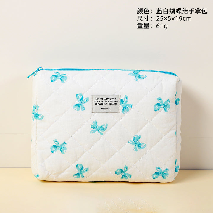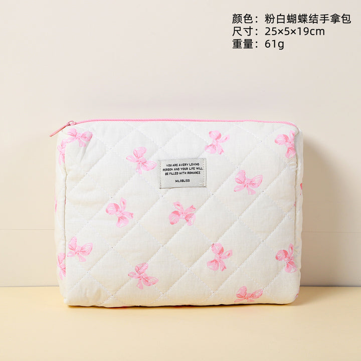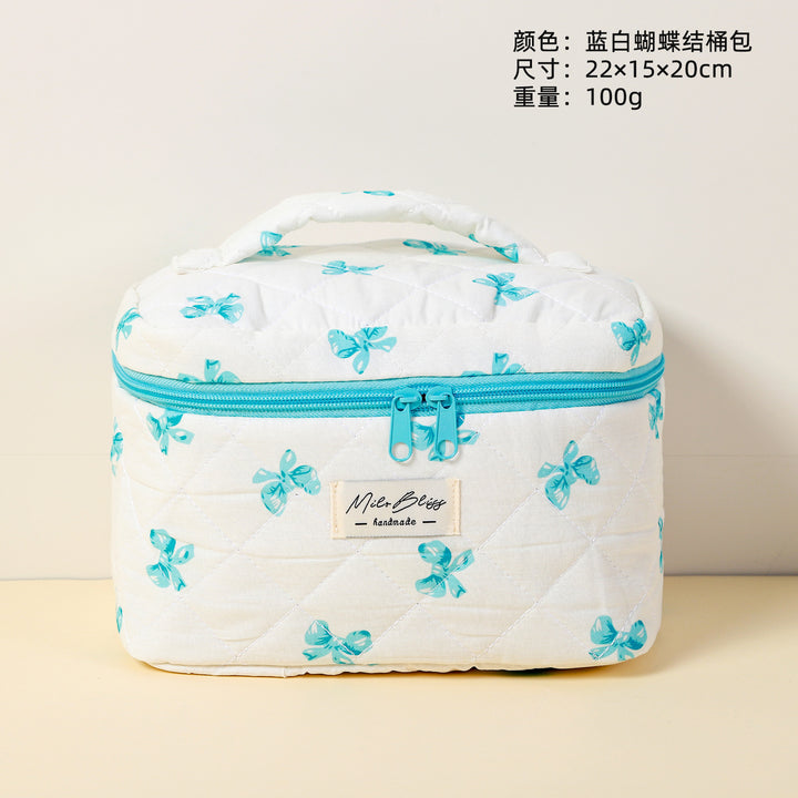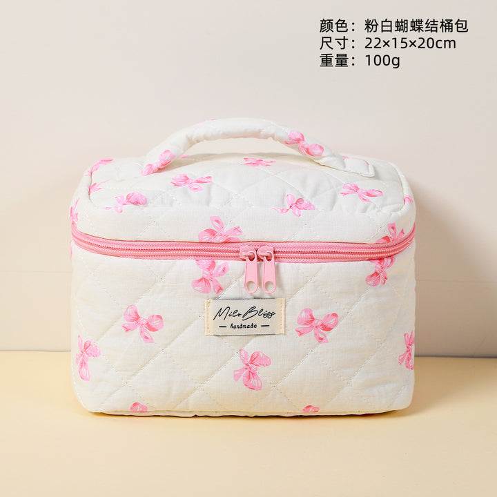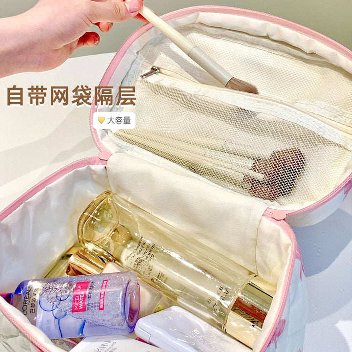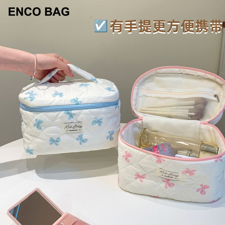 Bow cosmetic bag large capacity high sense simple storage bag ins style high value travel portable toilet bag
