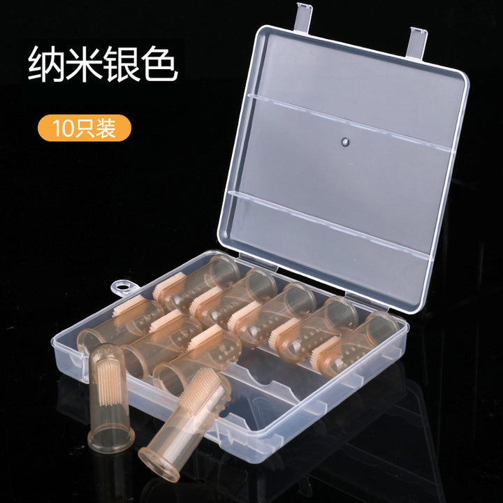 Boxed baby thumb cover toothbrush, silicone baby teeth brush, finger cover toothbrush, baby tongue coating cleaning brush, ten packs.