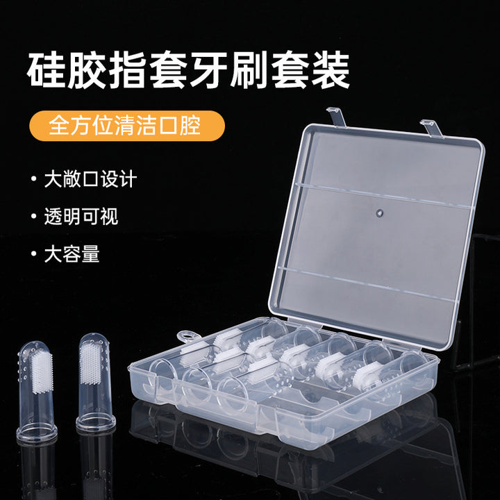 Boxed baby thumb cover toothbrush, silicone baby teeth brush, finger cover toothbrush, baby tongue coating cleaning brush, ten packs.