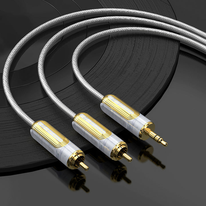 Brand private mold one point two 3.5 to 2rca computer power amplifier speaker marble 3.5mm to double lotus audio cable