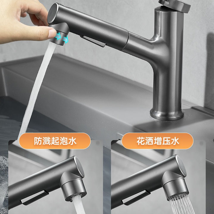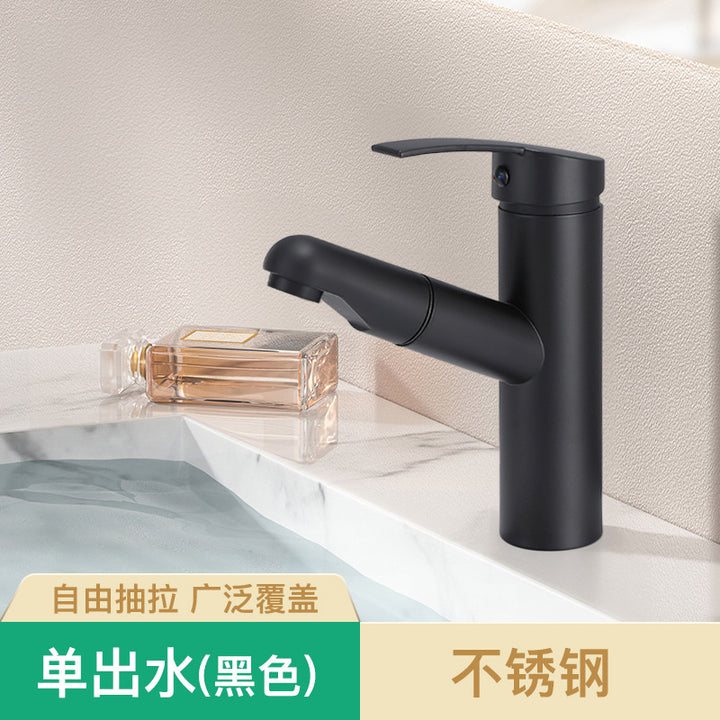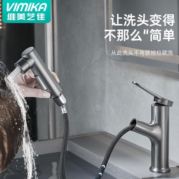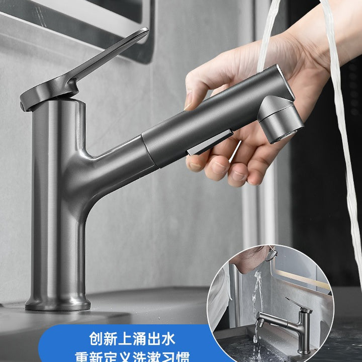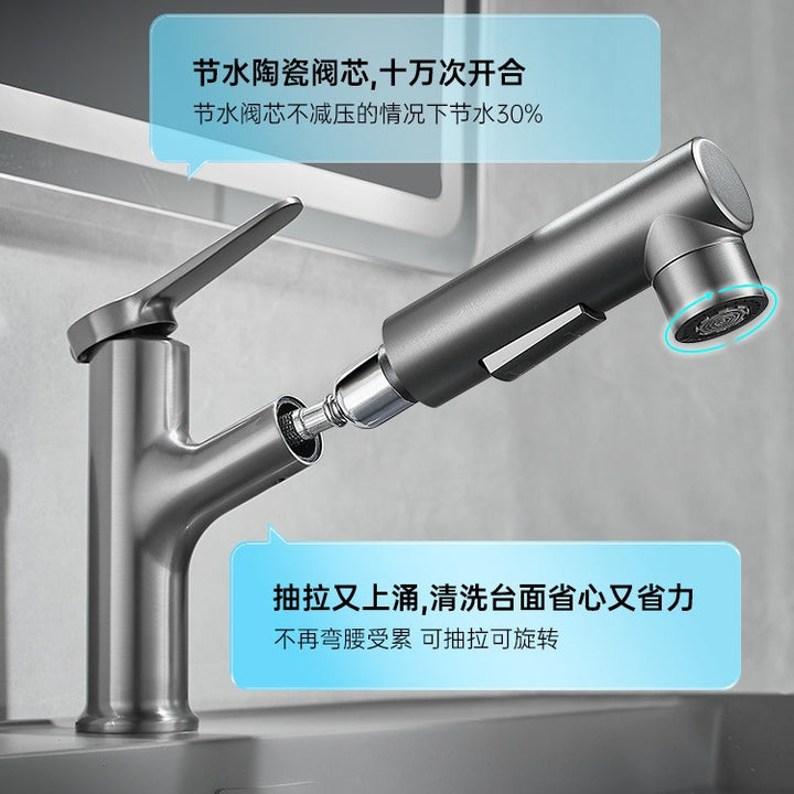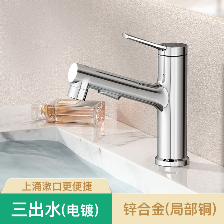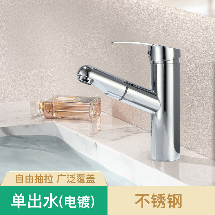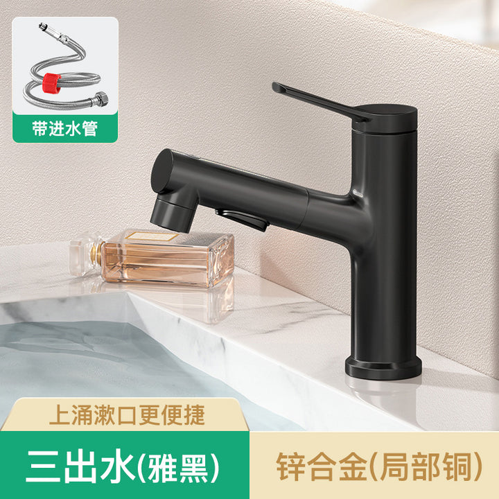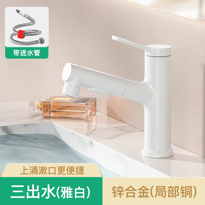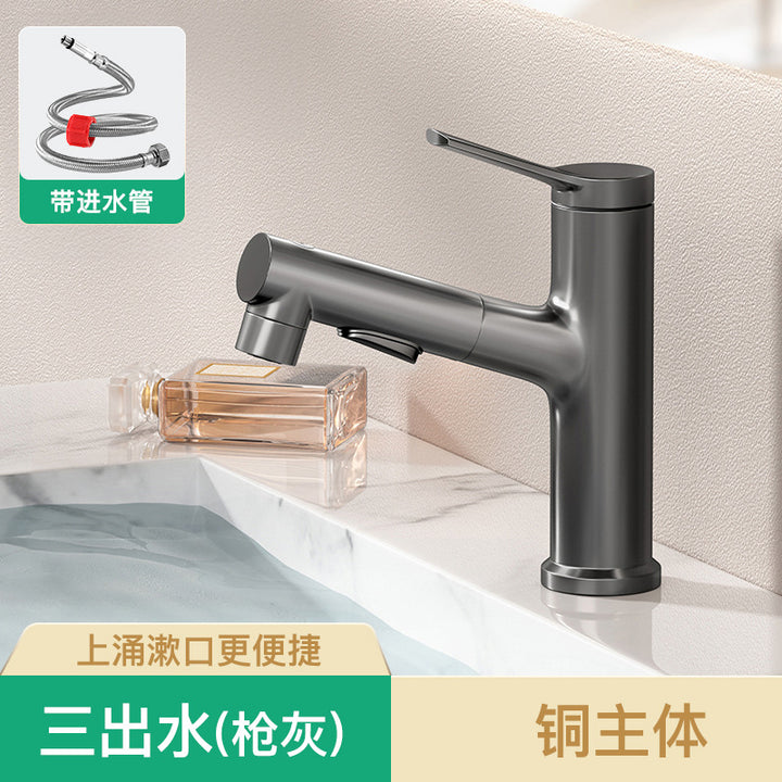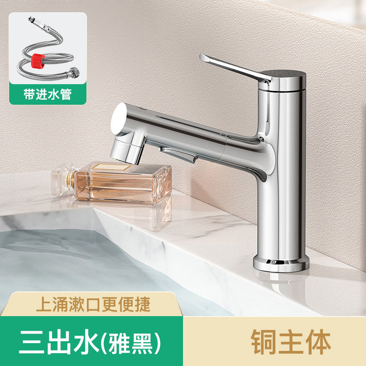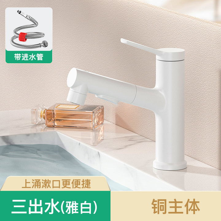 Brass pull-out basin faucet, bathroom washbasin, hot and cold water faucet, basin on stage, mouthwash, hot and cold faucet