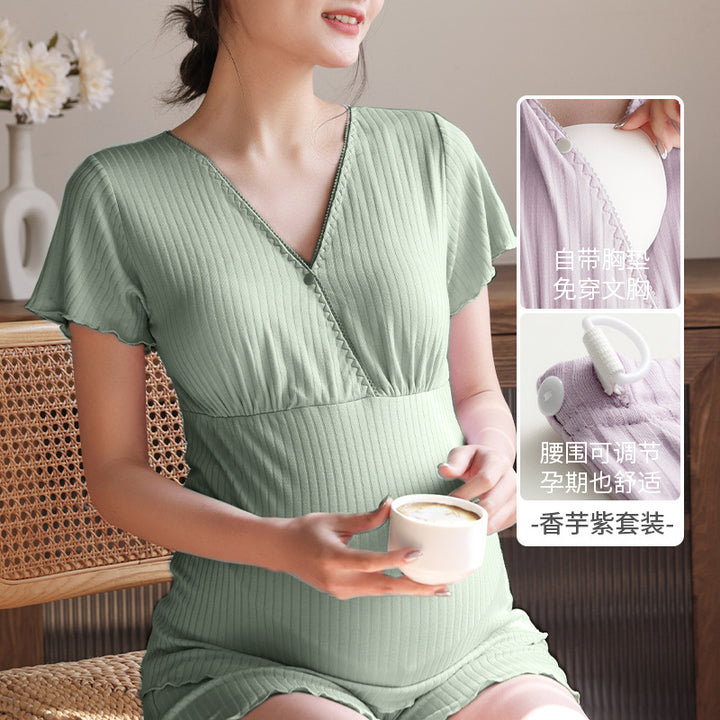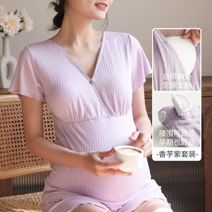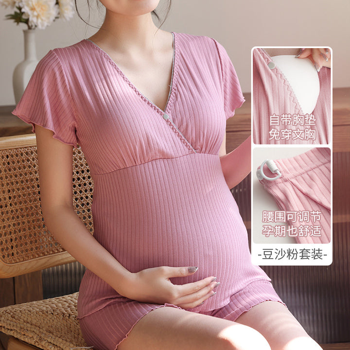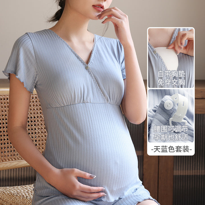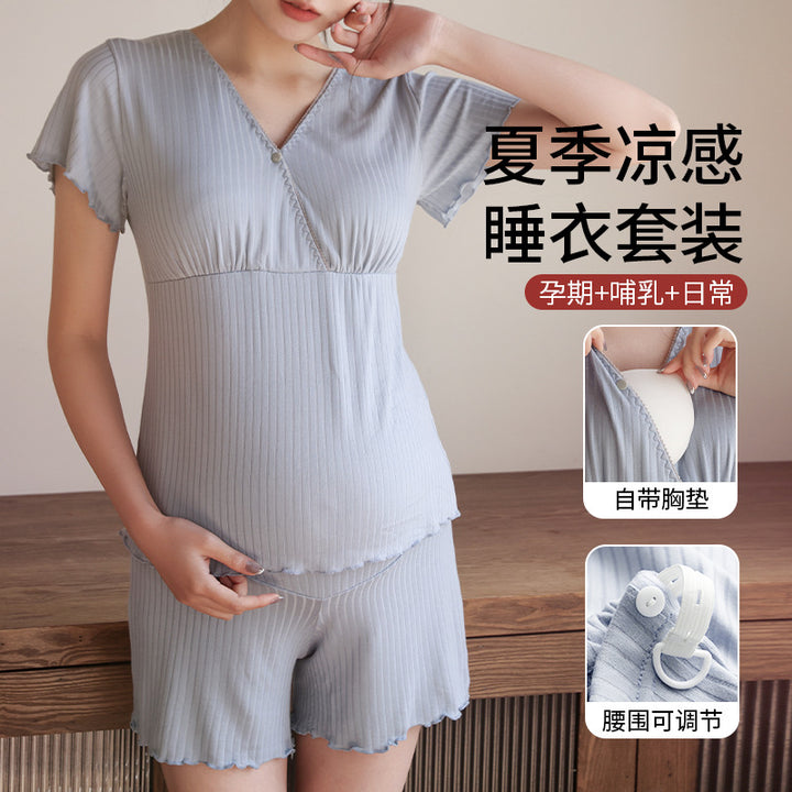 Breastfeeding pajamas short-sleeved two-piece confinement clothes, summer thin pregnant women, pregnancy, postpartum breastfeeding tops, loungewear