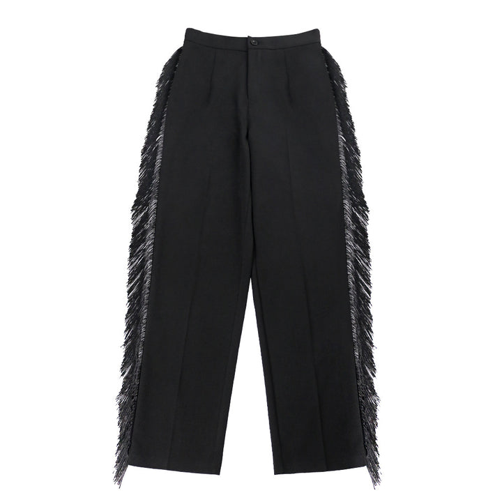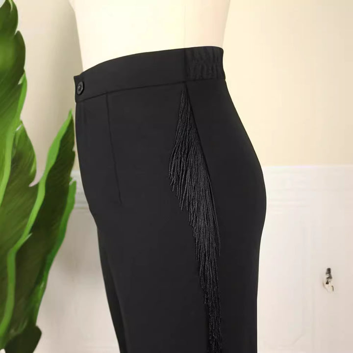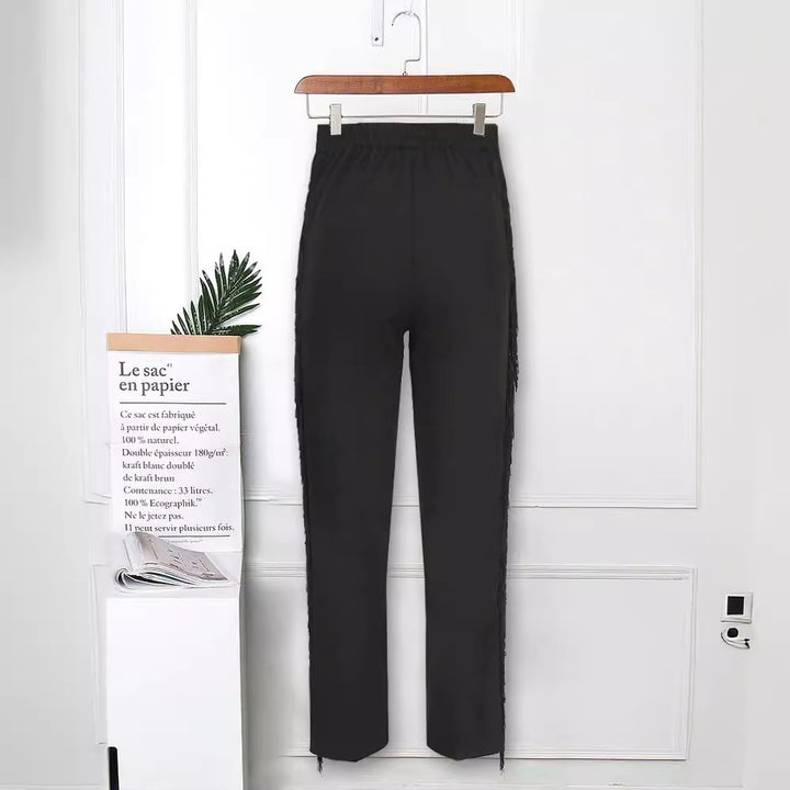 Breathable elastic high waist slim-fitting pants long pants fringed edge high elastic large size women's casual pants Slacks