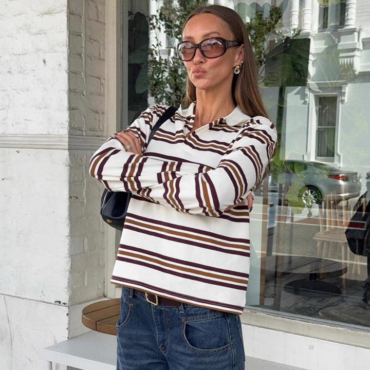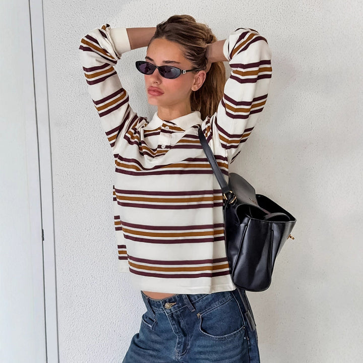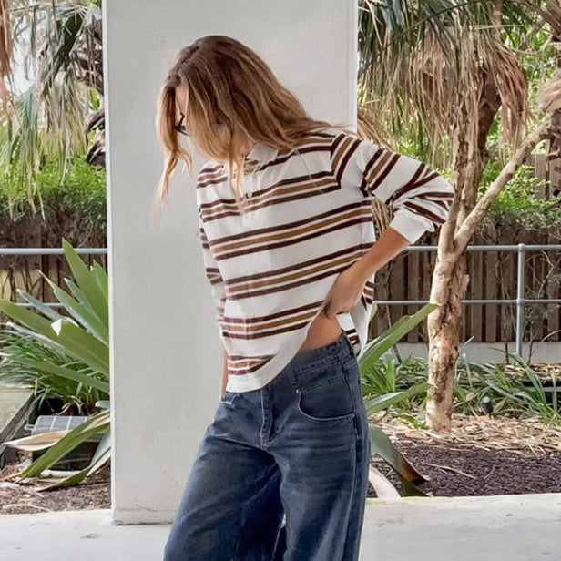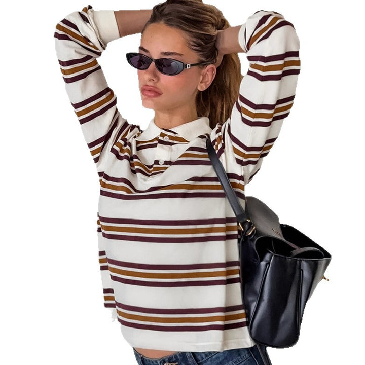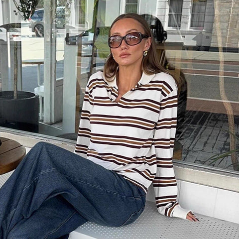 British contrasting striped long-sleeved knitted t-shirt versatile autumn 2025 new thin casual polo shirt top