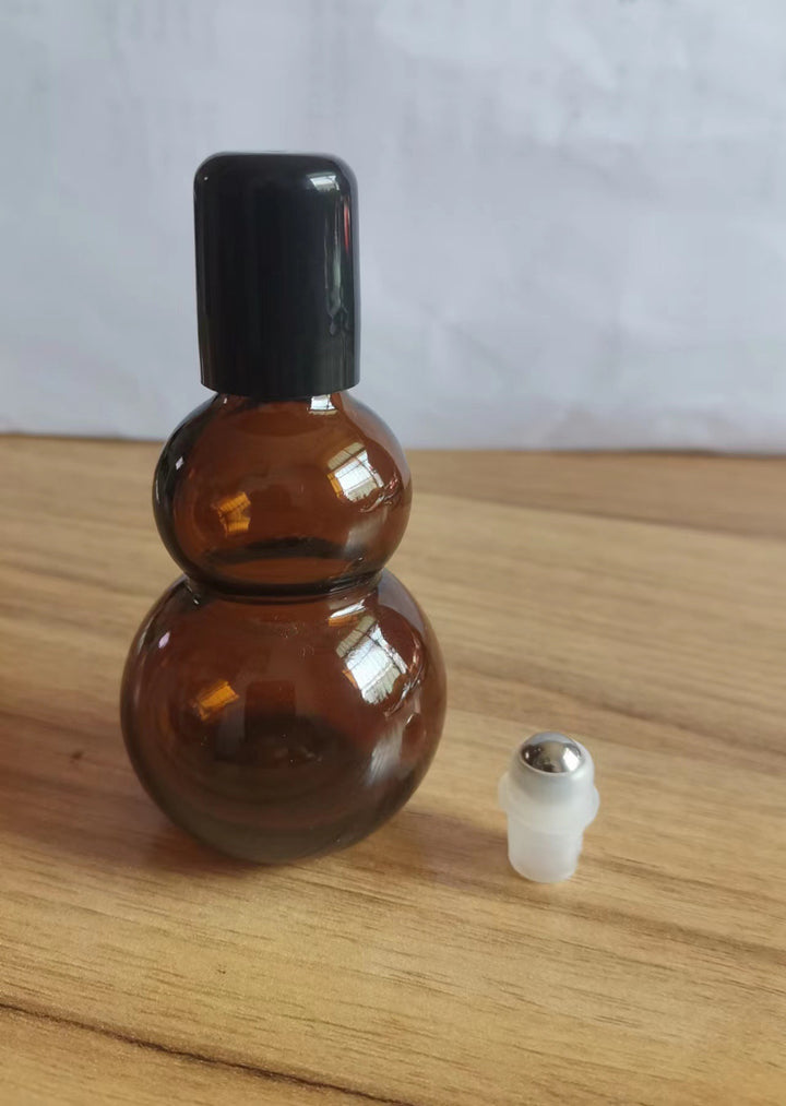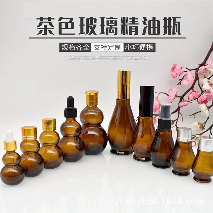 Brown gourd bottle, essential oil bottle, dark ball bottle, glass medicine oil bottle, press ...