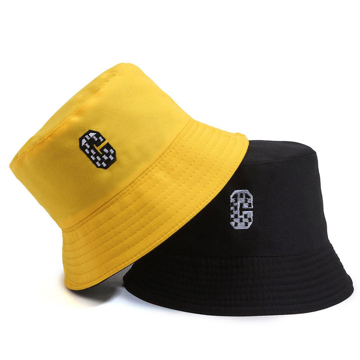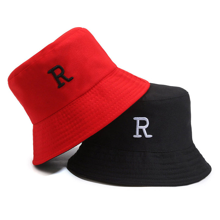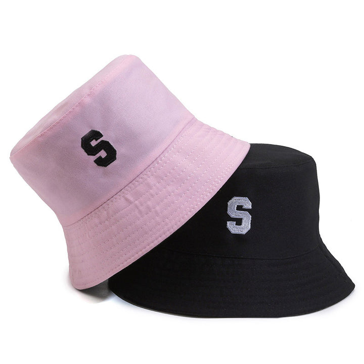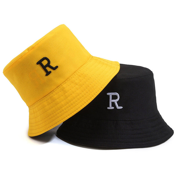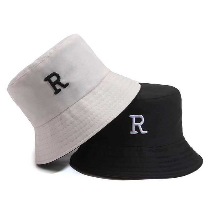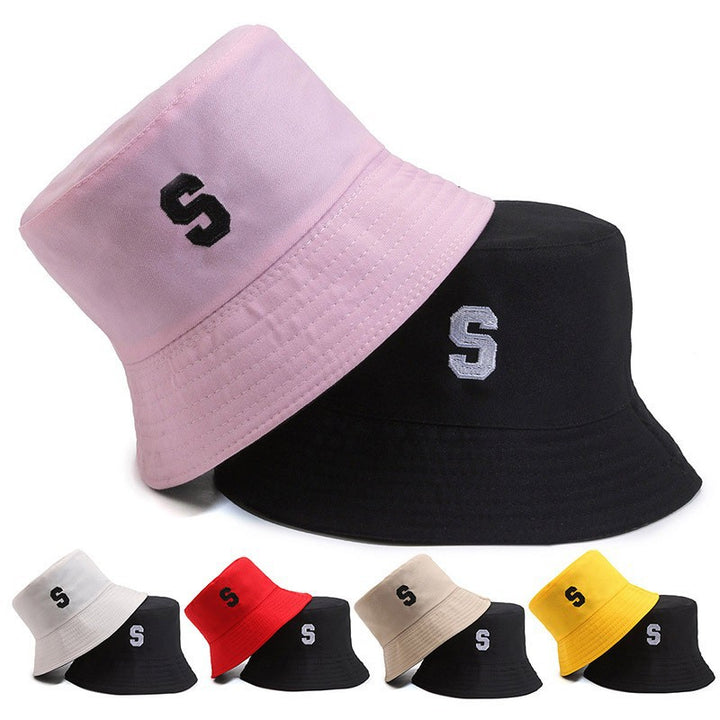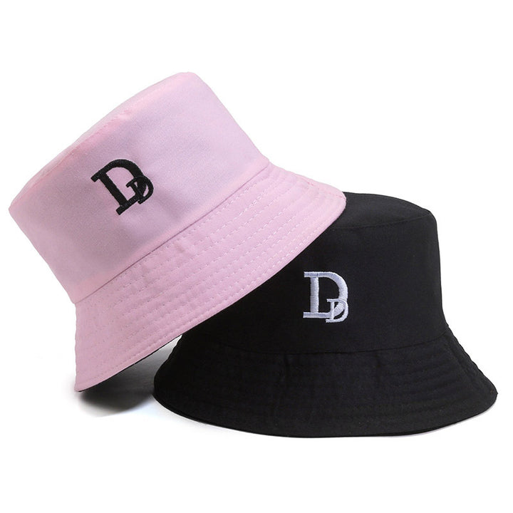 Bucket hat double-sided sun hat women's UV protection sun protection hat letter embroidery outdoor face cover sun hat shows small face