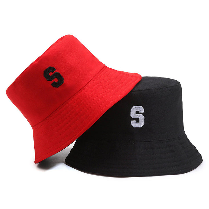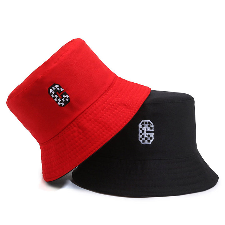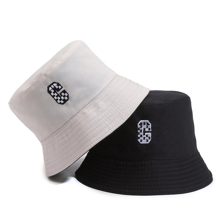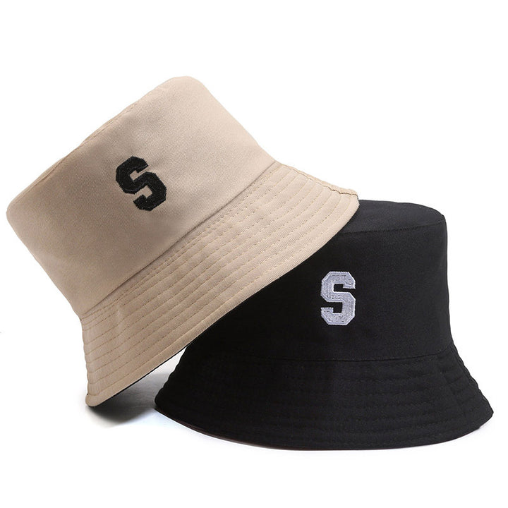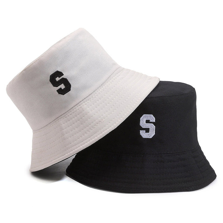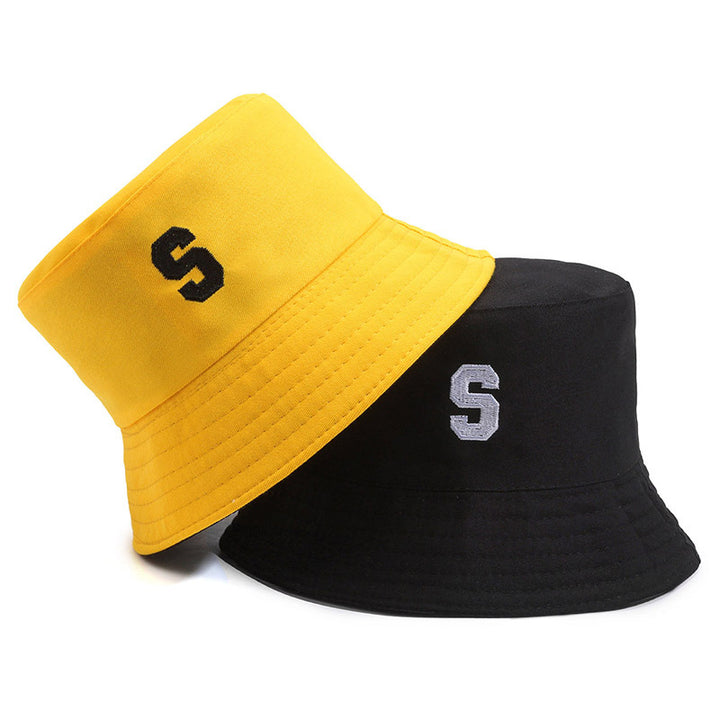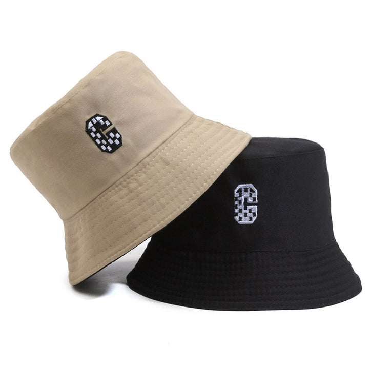 Bucket hat double-sided sun hat women's UV protection sun protection hat letter embroidery outdoor face cover sun hat shows small face