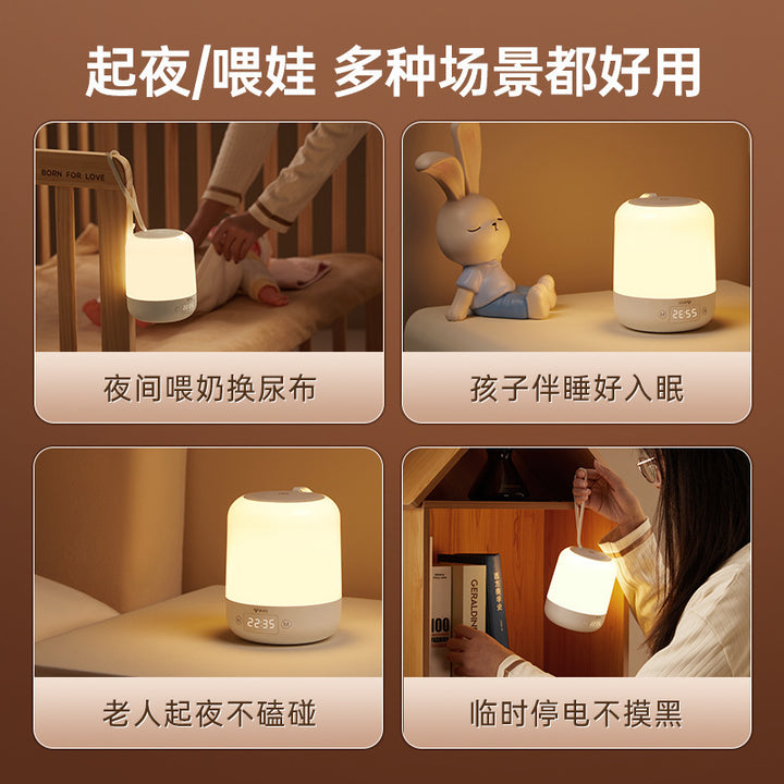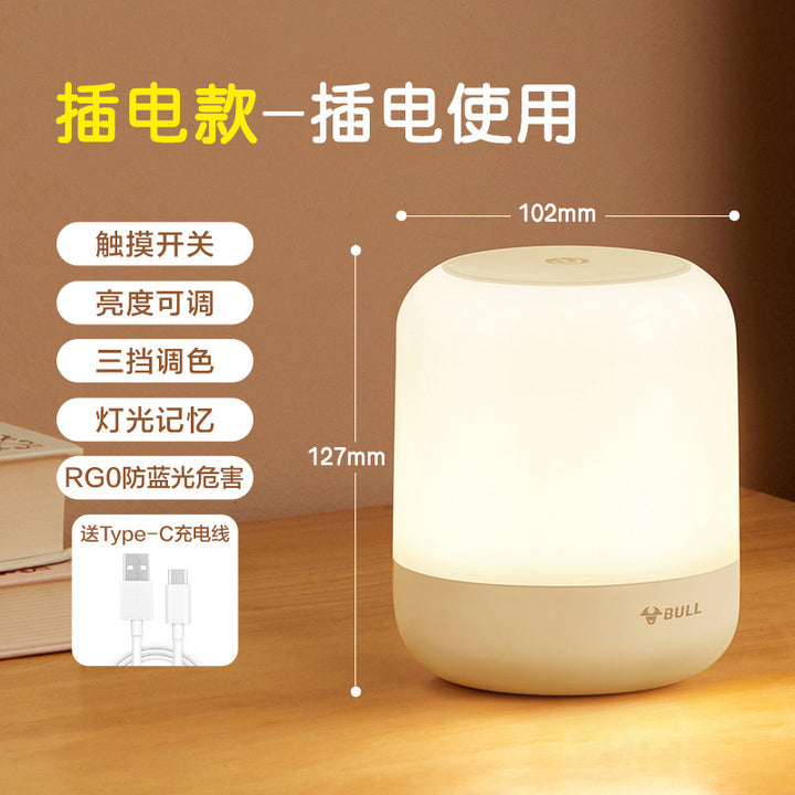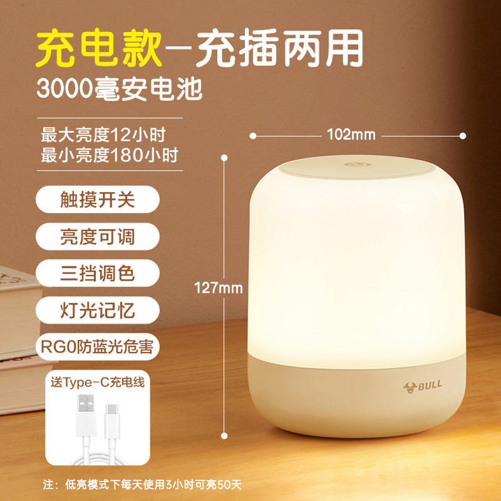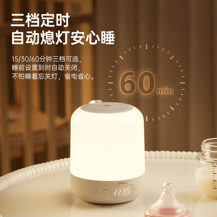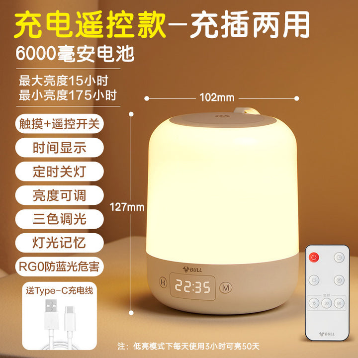 Bull bedside lamp, bedroom high-end night light, rechargeable sleep light, baby feeding eye protection, clock light
