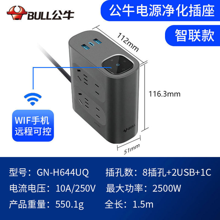 Bull fast charging socket usb smart power strip anti-surge socket household power purification wifi control converter