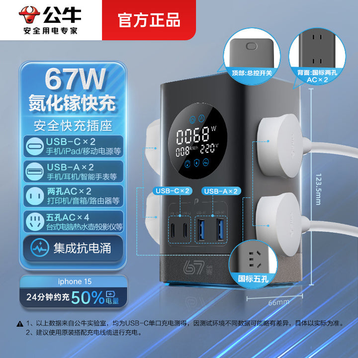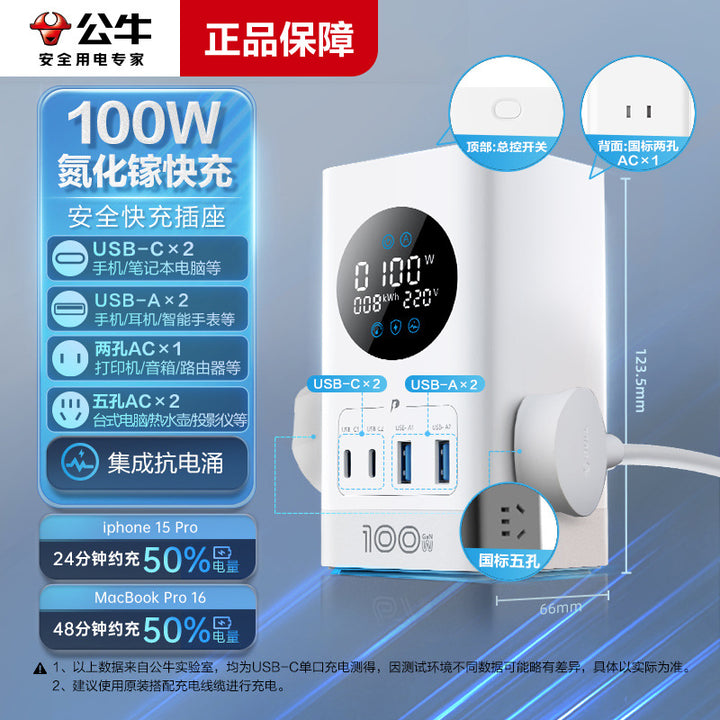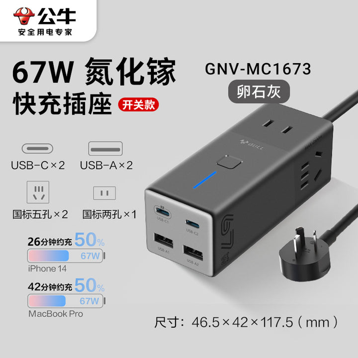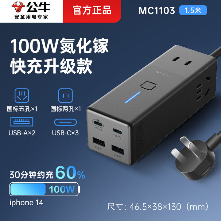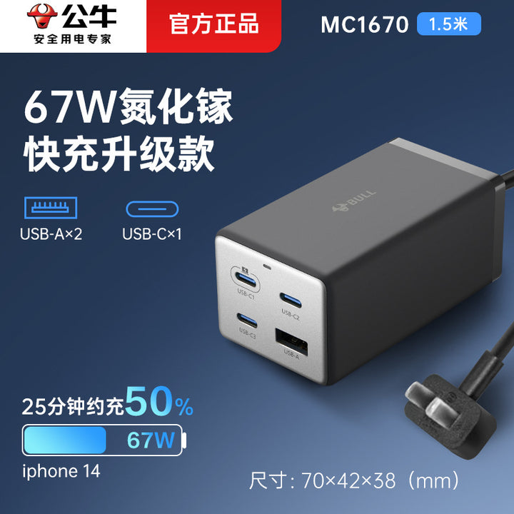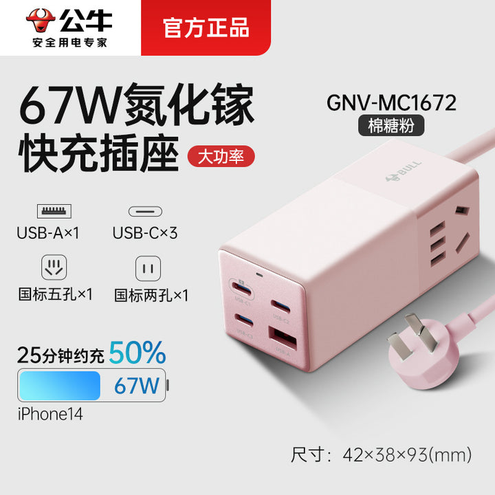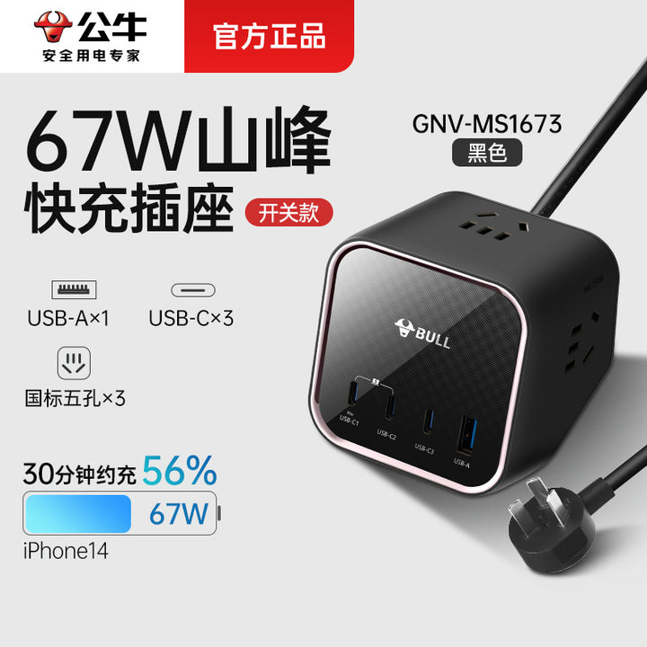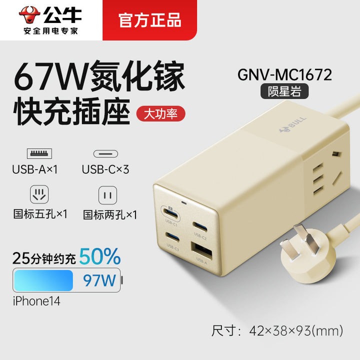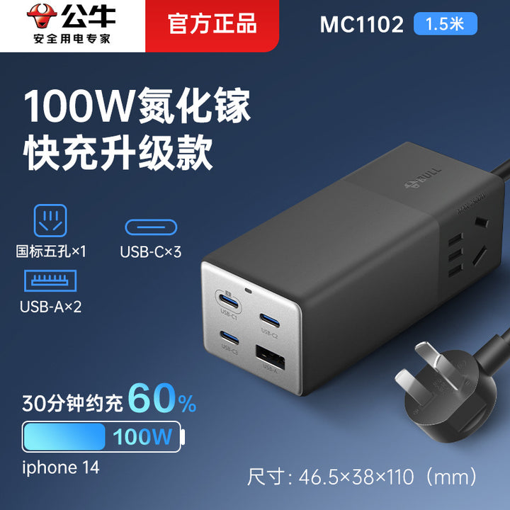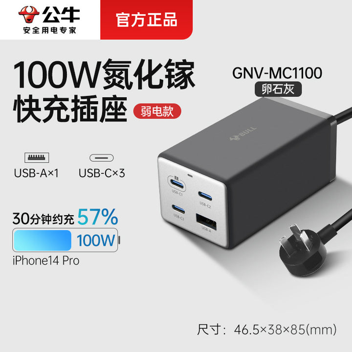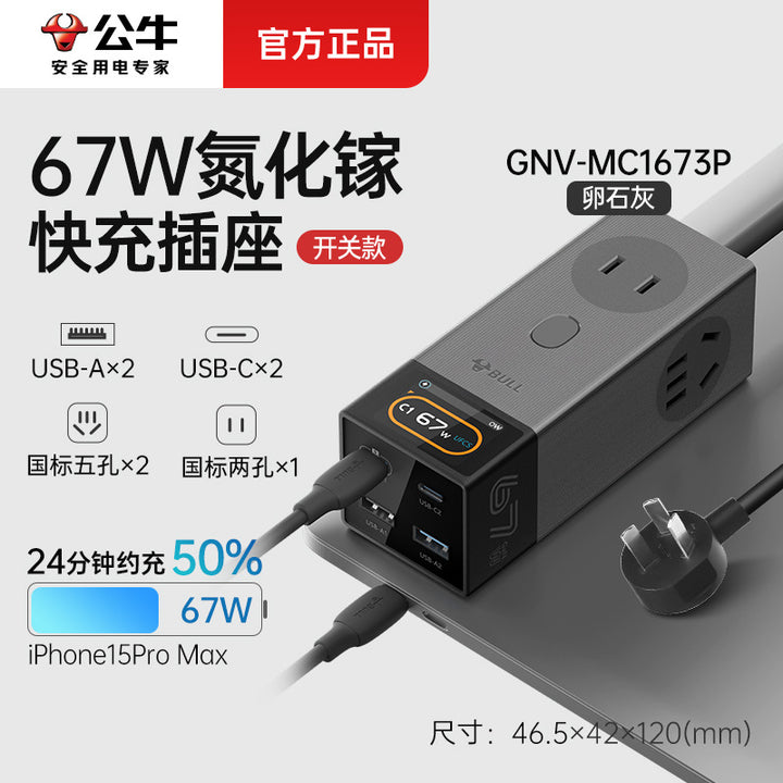 Bull gallium nitride socket digital charger 35W/67W/100W home desktop usb mobile phone fast charging power strip