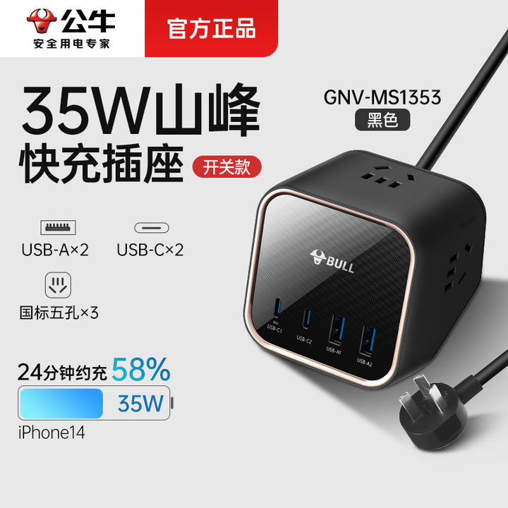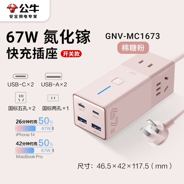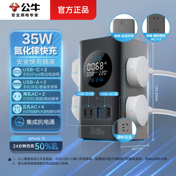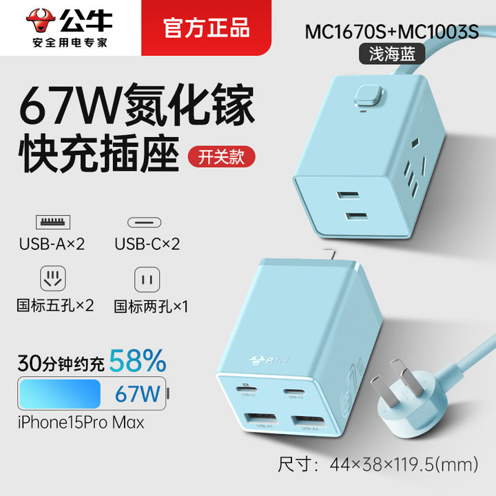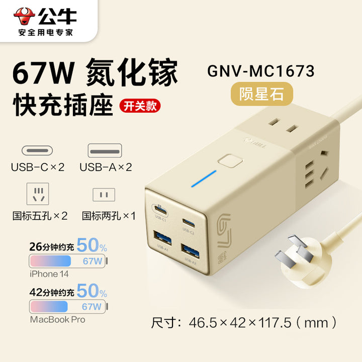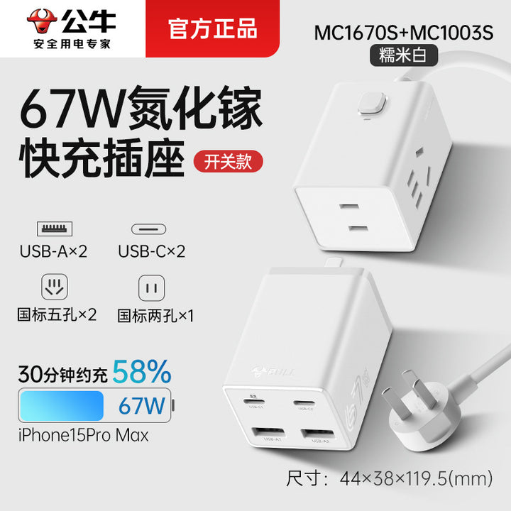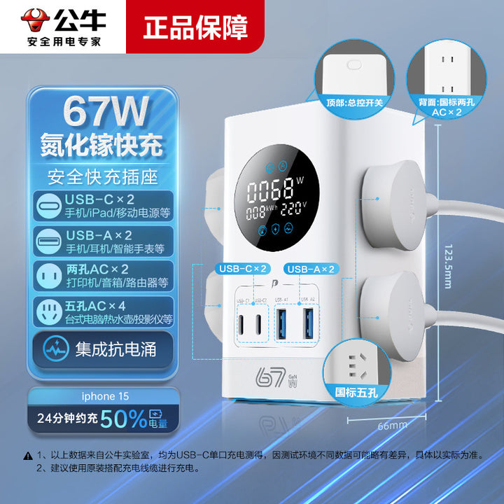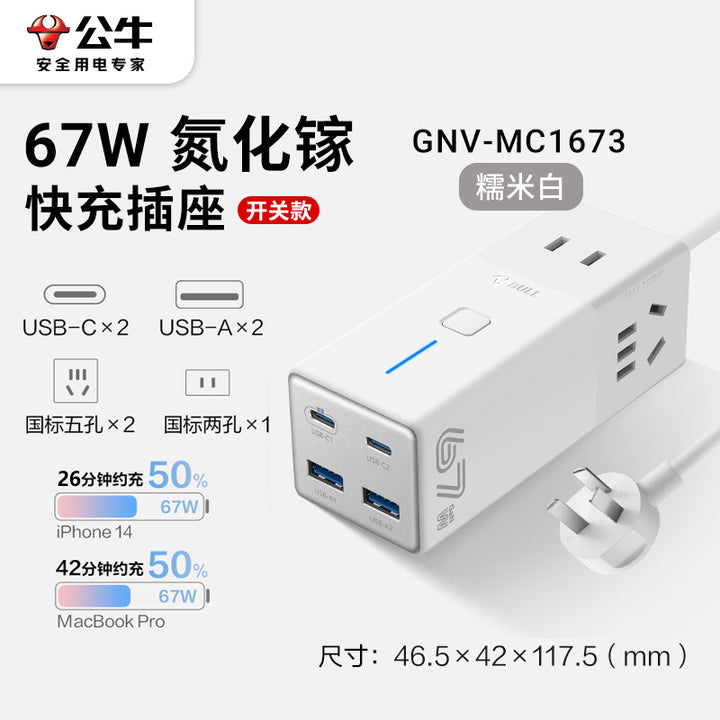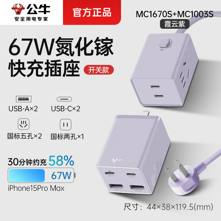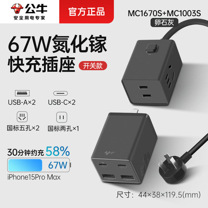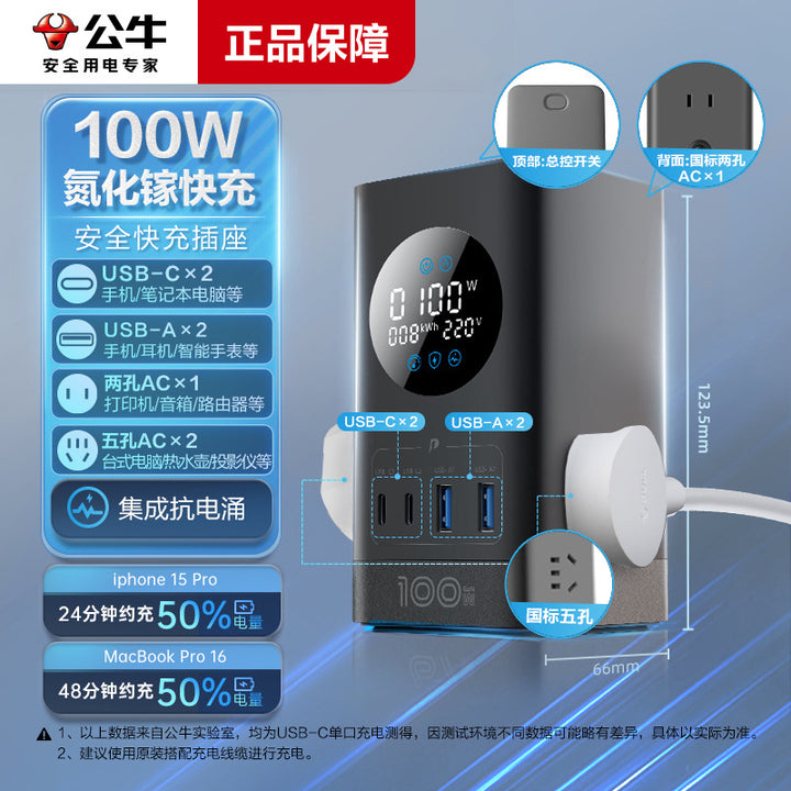 Bull gallium nitride socket digital charger 35W/67W/100W home desktop usb mobile phone fast charging power strip