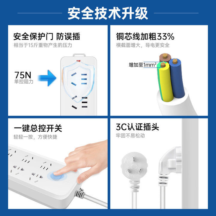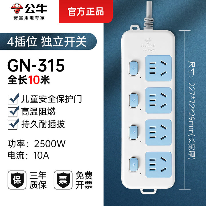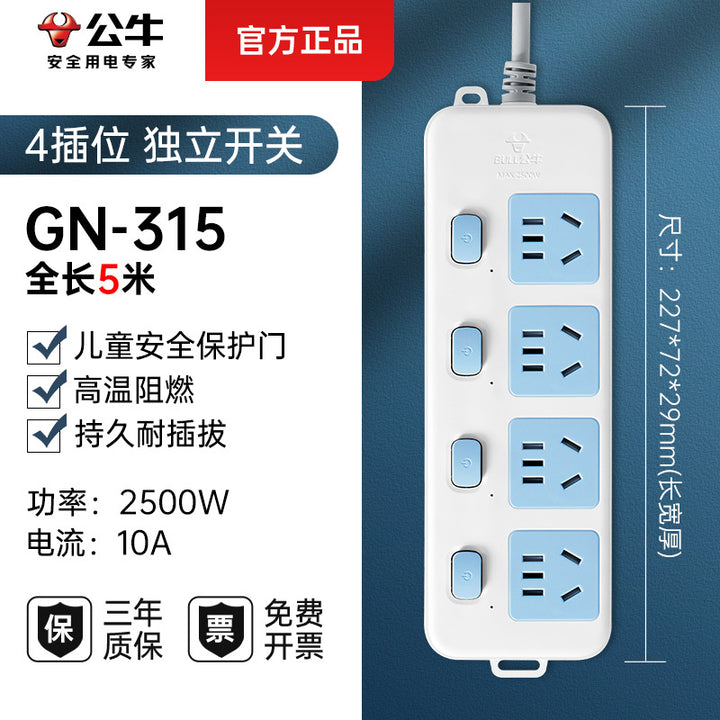 Bull GN-315 independent switching power strip 4 plug row plug power socket safety protection 4 hole plug board