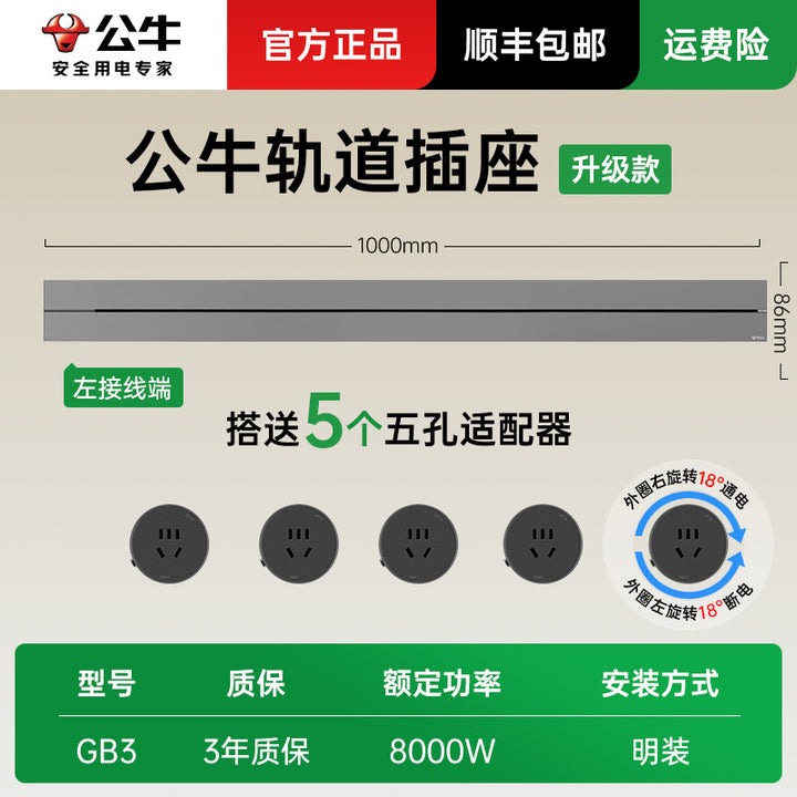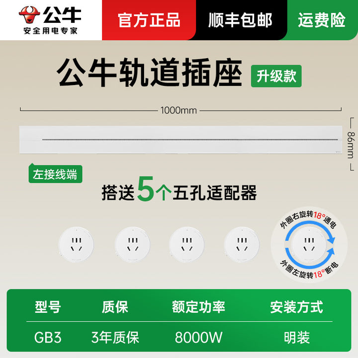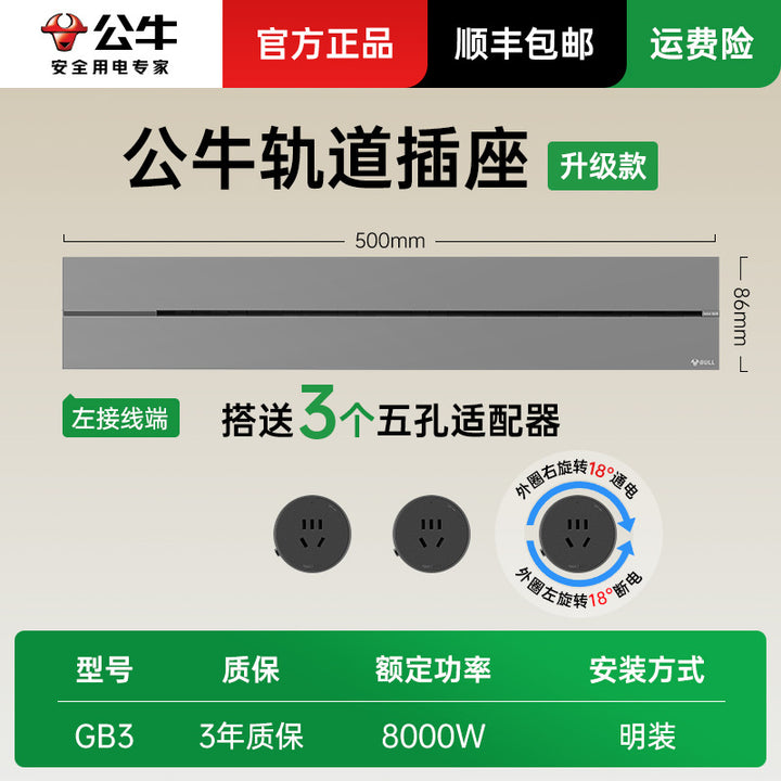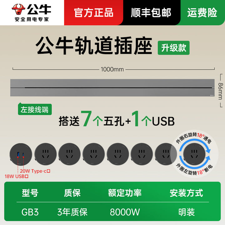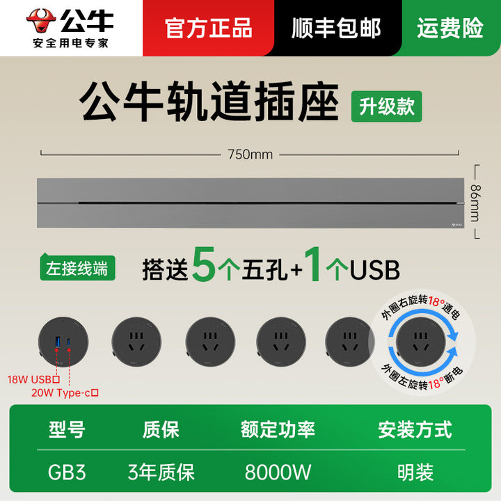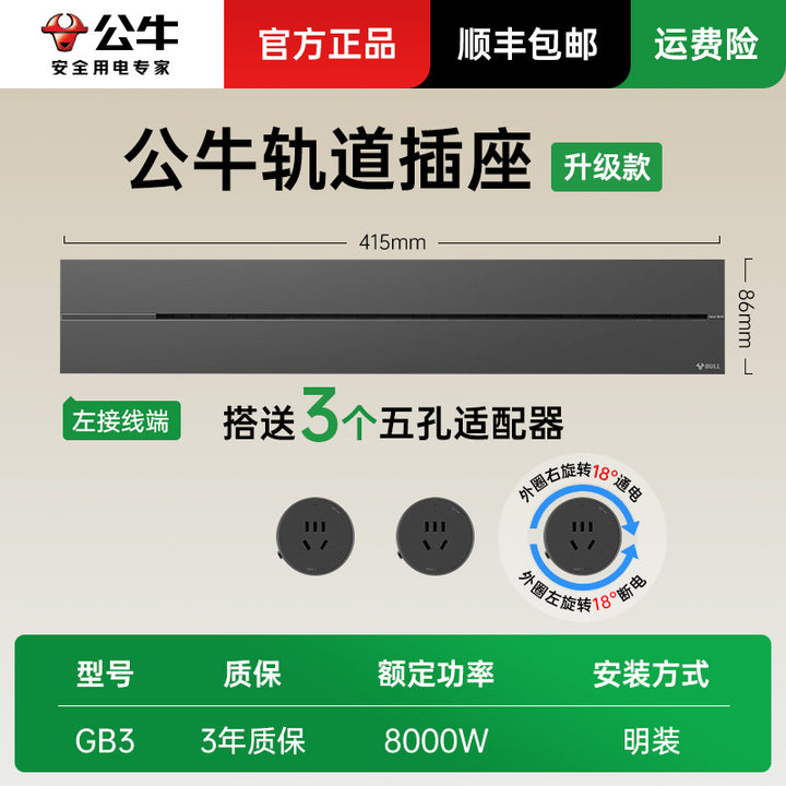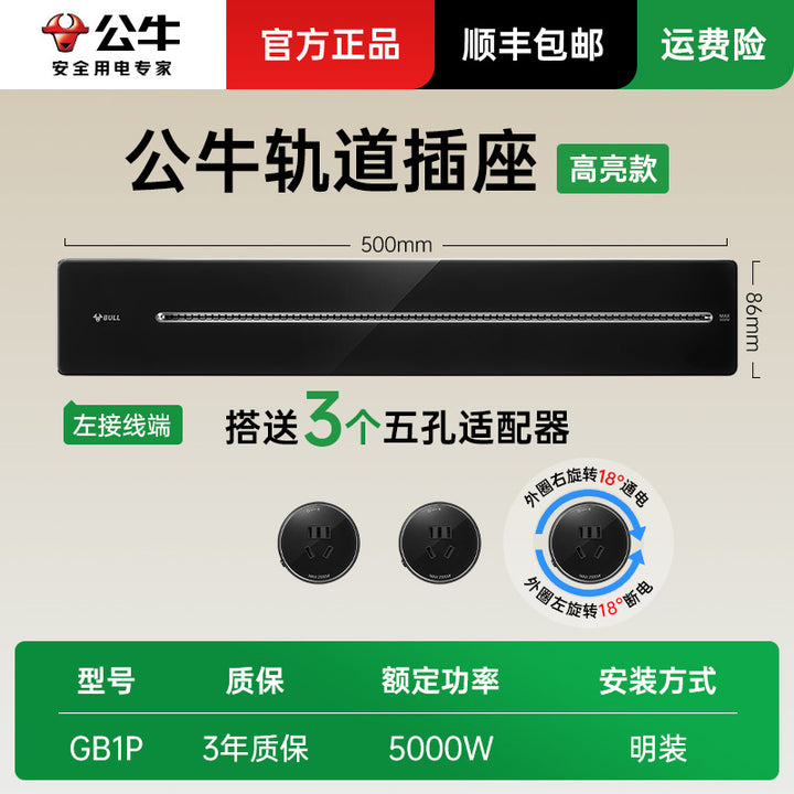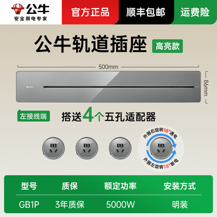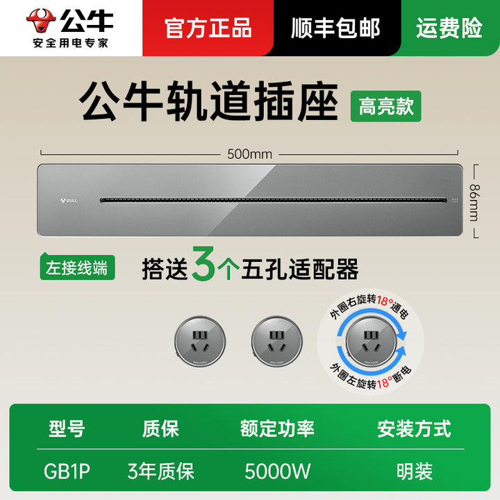 Bull highlight movable slide rail guide rail power rail socket surface mounted kitchen household power strip socket genuine