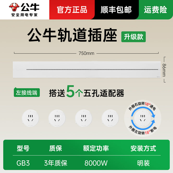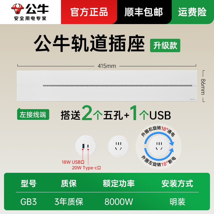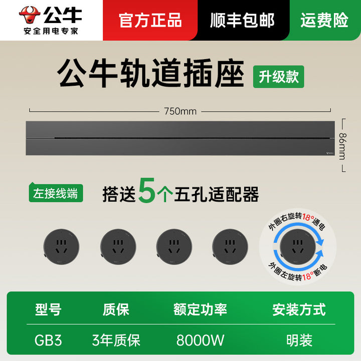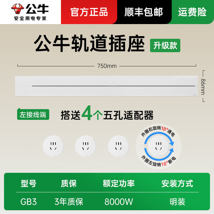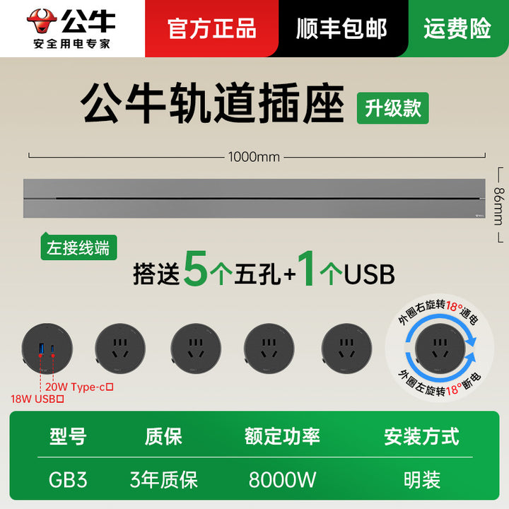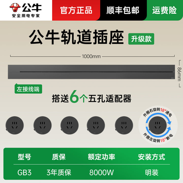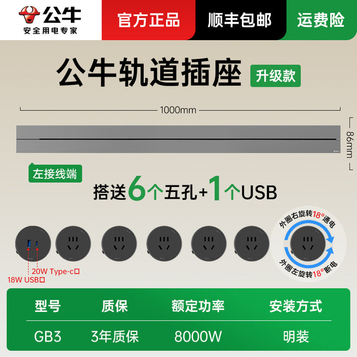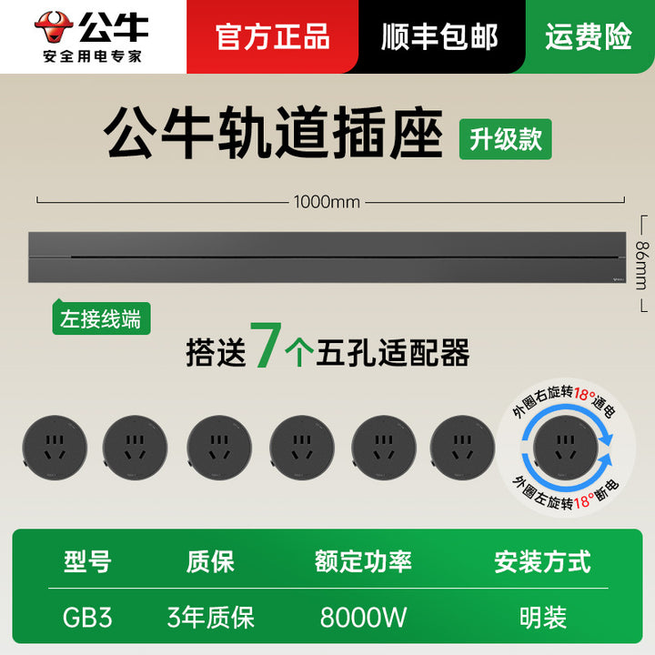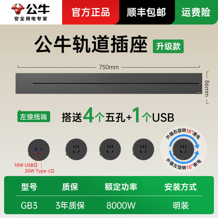 Bull highlight movable slide rail guide rail power rail socket surface mounted kitchen household power strip socket genuine