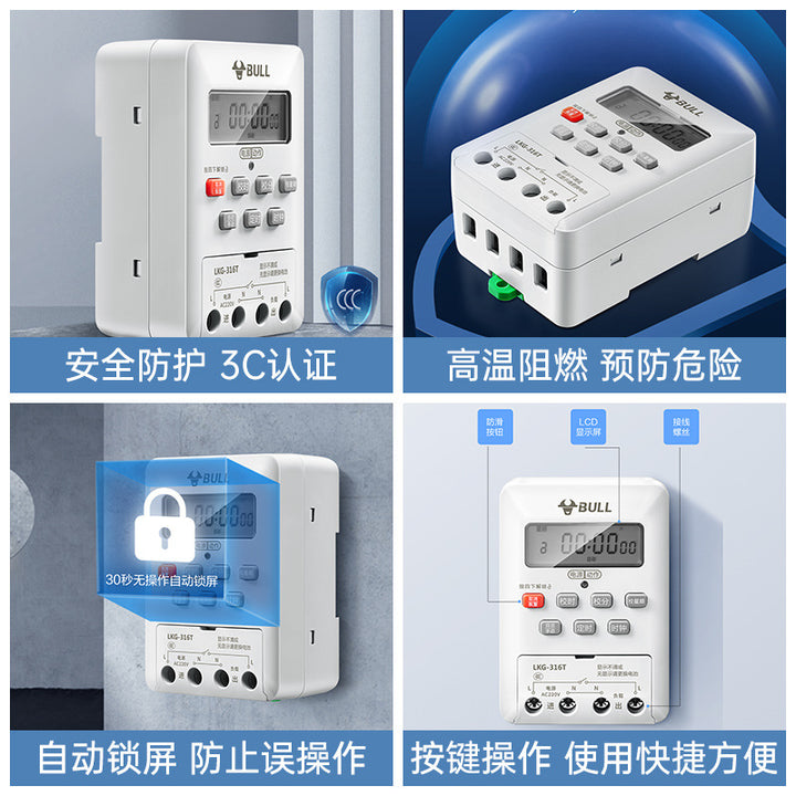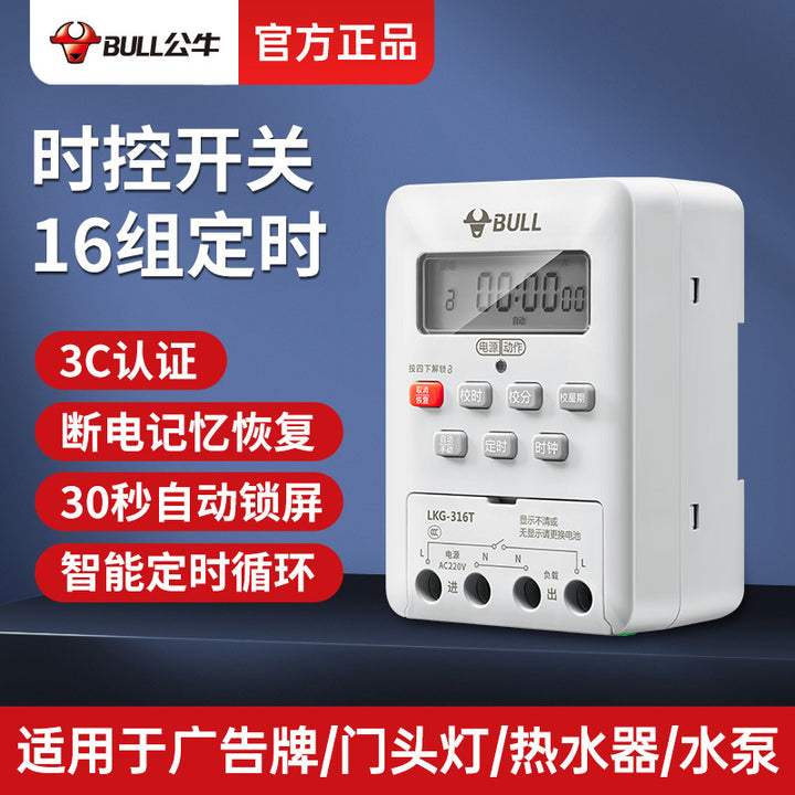 Bull intelligent switch 220V microcomputer timer time control switch digital display large screen timing switch controller