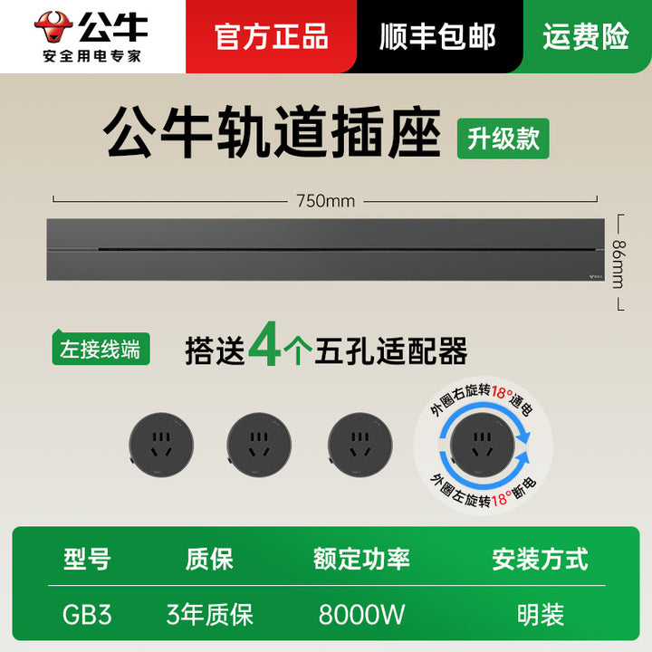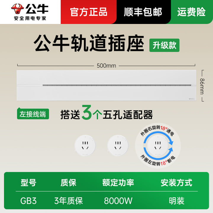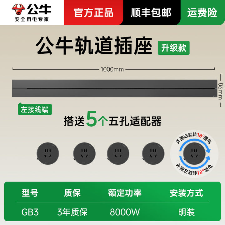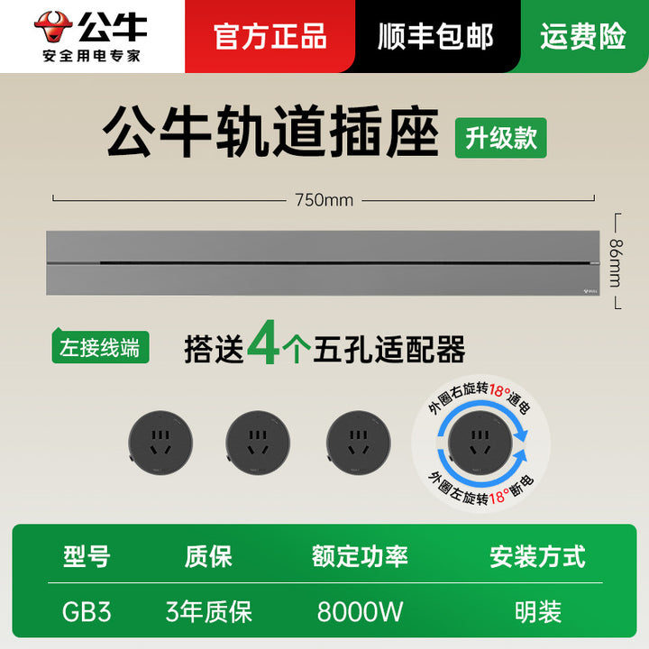 White painted surface mounted left wiring track socket (3 adapters) 500mm, White painted surface mounted left wiring track socket (4 adapters) 750mm, White painted surface mounted left wiring track socket (5 adapters) 1000mm, Titanium gray surface mounted left wiring track socket (3 adapters) 500mm, Titanium gray surface mounted left wiring track socket (4 adapters) 750mm, Titanium gray surface mounted left wiring track socket (5 adapters) 1000mm, Ink cloud gray surface mounted left wiring track socket (3 adapters) 500mm, 墨云灰明装左接线轨道插座(4个适配器)750mm, 墨云灰明装左接线轨道插座(5个适配器)1000mm |