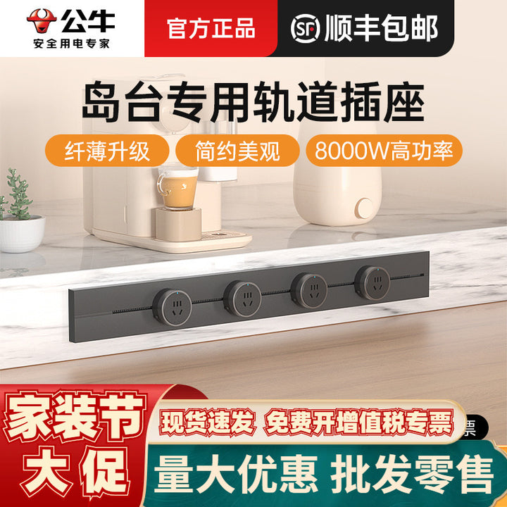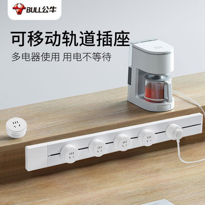Bull movable wall-mounted track socket living room kitchen slide rail white surface-mounted dining side cabinet sliding power strip