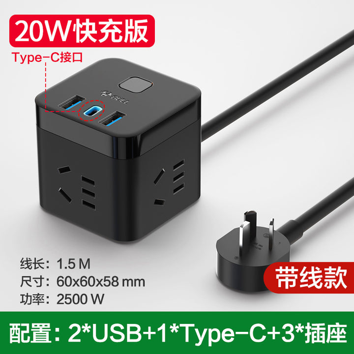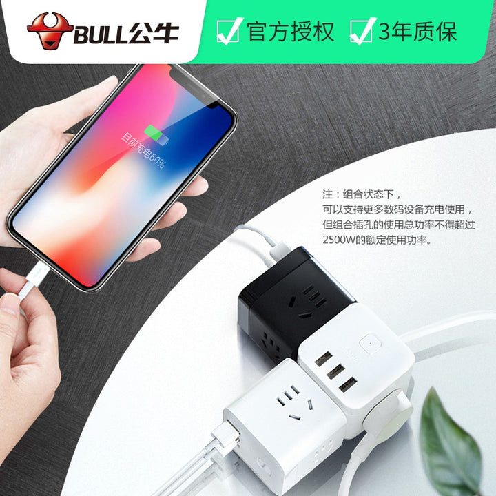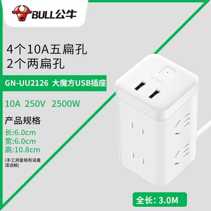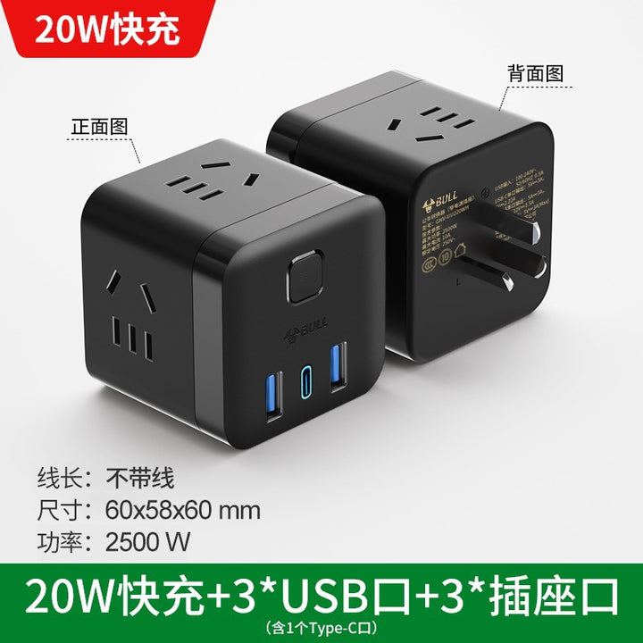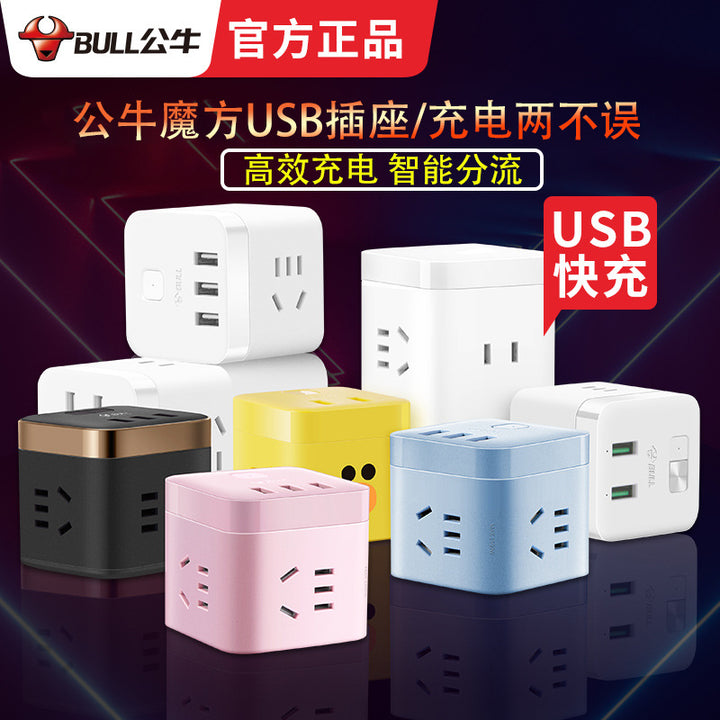 Bull Rubik's Cube plug-in USB socket wholesale intelligent 20W/30W fast charging gift creative logo power strip genuine