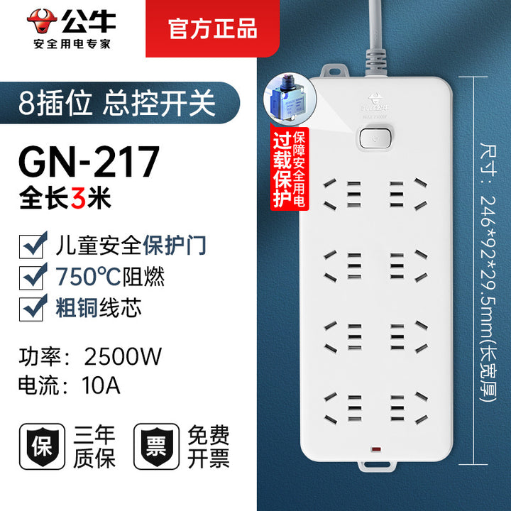 Bull with wire plug floor drag socket master control eight plug-in board plug-in board drag board power strip GN-217/3m/5m
