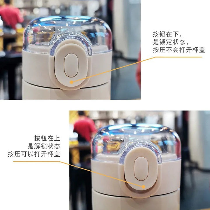 Bullet cover thermos cup female cute student portable stainless steel water cup simple and fresh Mori crossbody cartoon cup female