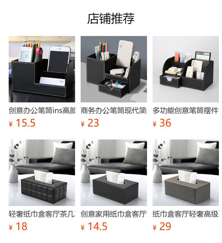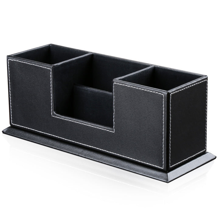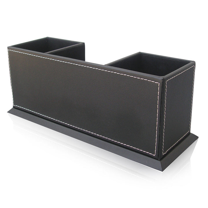 Business office pen holder Multifunctional leather double pen holder Desktop office supply storage box Light luxury storage pen holder