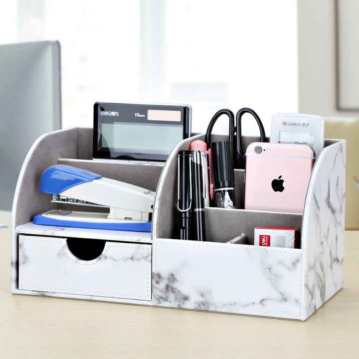 Business office storage pen holder creative fashion desktop office supplies stationery box multi-function black pu storage box