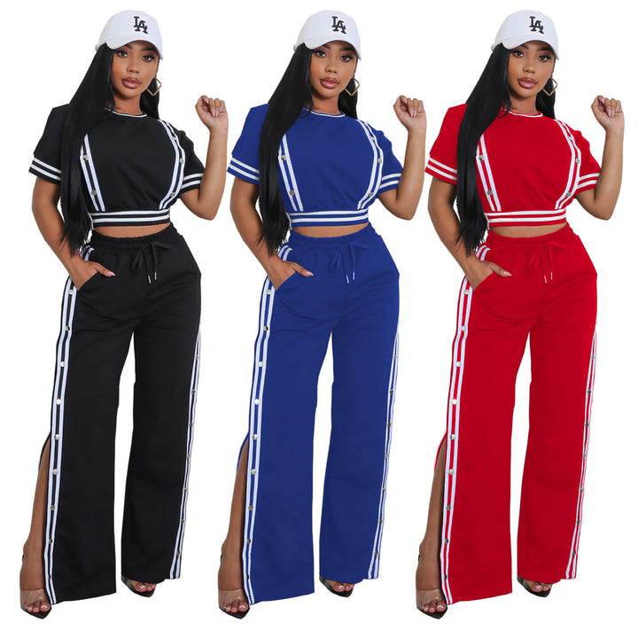 C7255 Cross-border European and American fashion women's clothing trend wide-leg loose casual trousers two-piece set