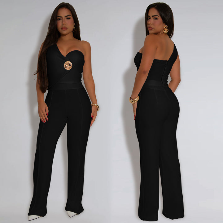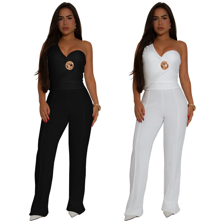 C7418 Cross-border European and American fashion women's clothing temperament slim sleeveless top trousers two-piece set