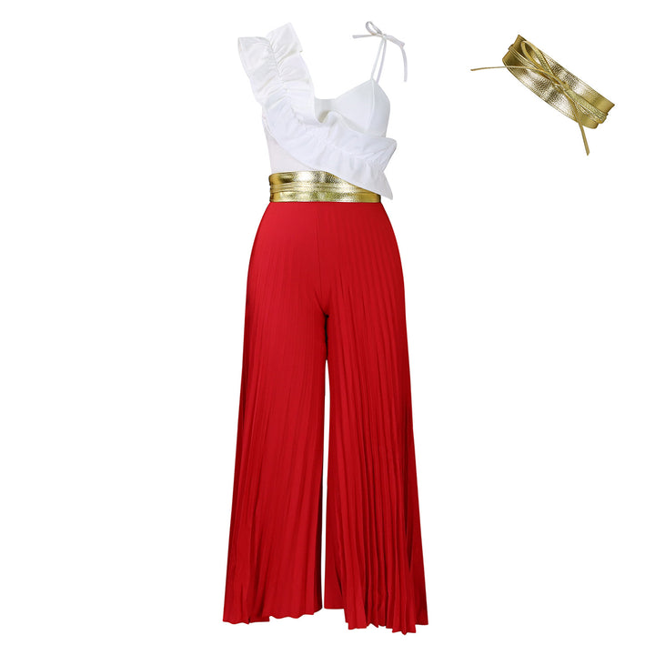 C8605 European and American women's clothing sexy ruffle edge sleeveless top wide-leg wide-leg pants fashion suit