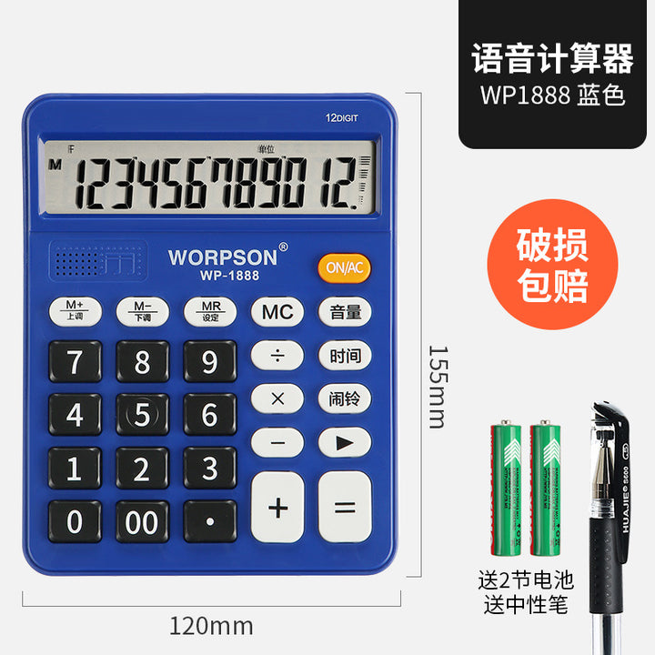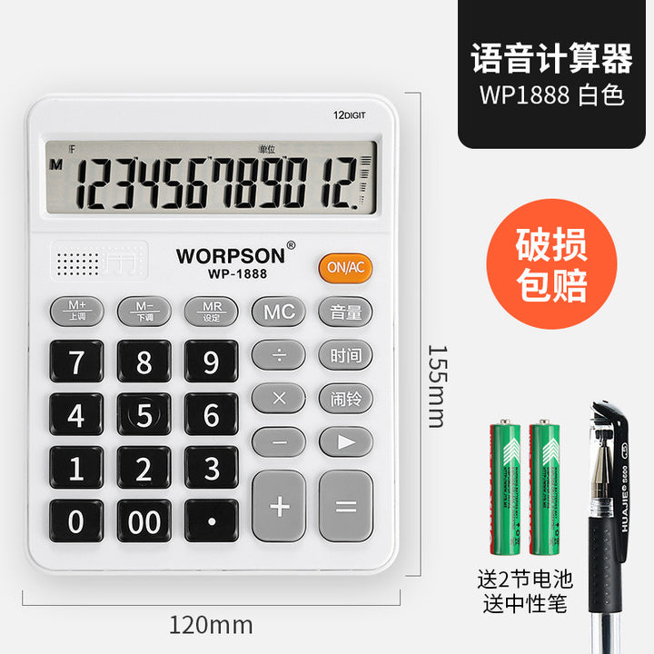 Calculator with voice real pronunciation computer date time music alarm simple fashion financial accounting
