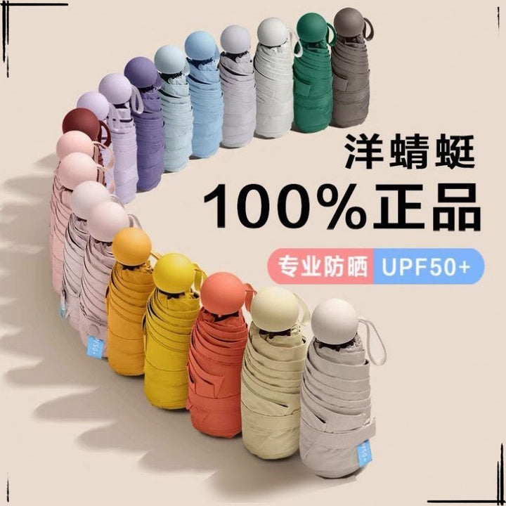 Capsule Sun Umbrella Women's Sunscreen UV Protection Sunshade Umbrella Dual-purpose Mini Five Folding Ultra Light Compact Portable