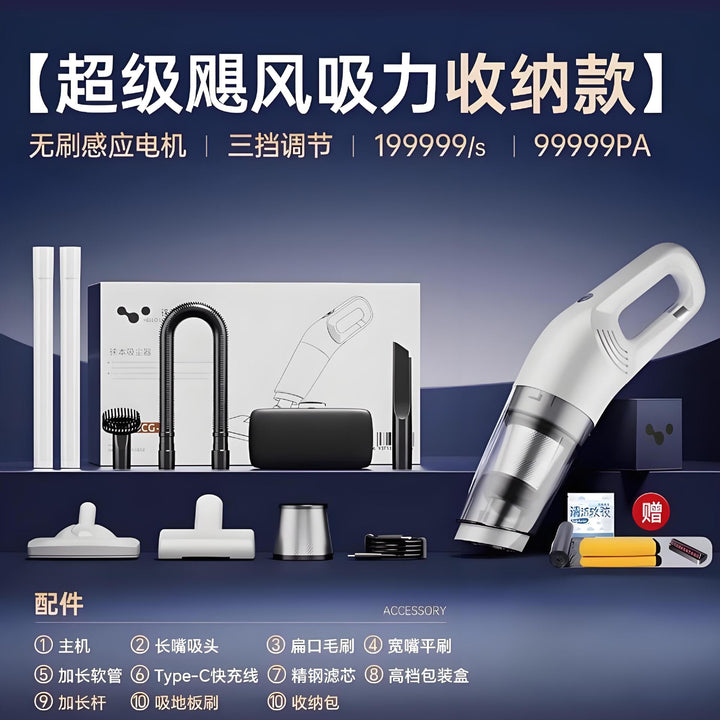 Car vacuum cleaner Car wireless charging Car household handheld 120W high power suction dry and wet