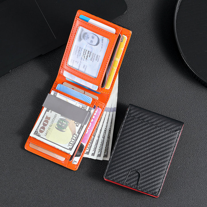 Carbon fiber wallet leather wallet European and American men's wallet rfid dollar wallet dollar wallet wallet fixed logo