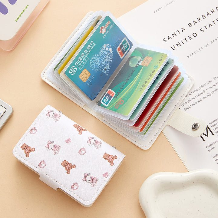Card bag, bear anti-degaussing, multi-card space, large capacity, student girl card holder, portable, compact and ultra-thin driver's license card ...