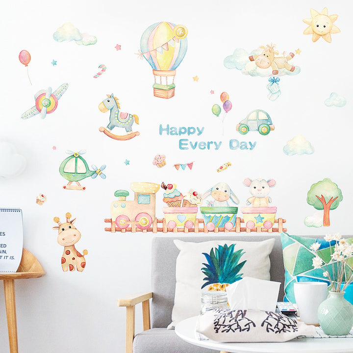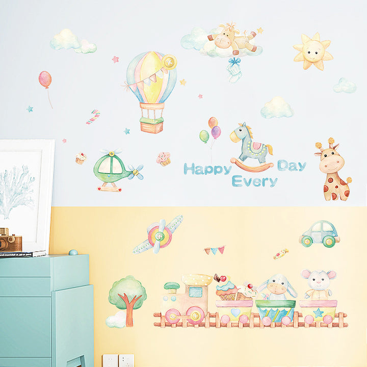 Cartoon airplane sticker, hot air balloon children's room bedroom kindergarten bedside classroom wall decoration painting HM71010
