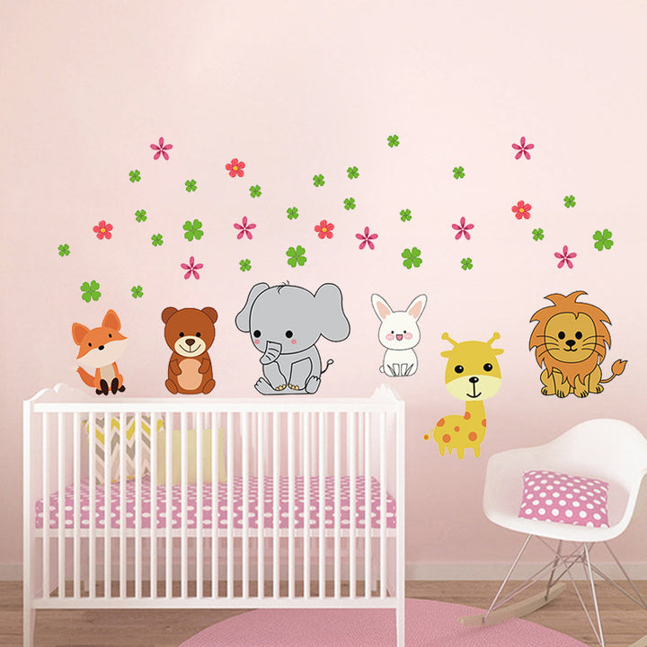 Cartoon animal baby elephant rabbit giraffe childlike fun sticker children's room bedroom living room wall decoration wall sticker