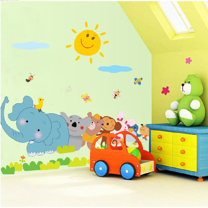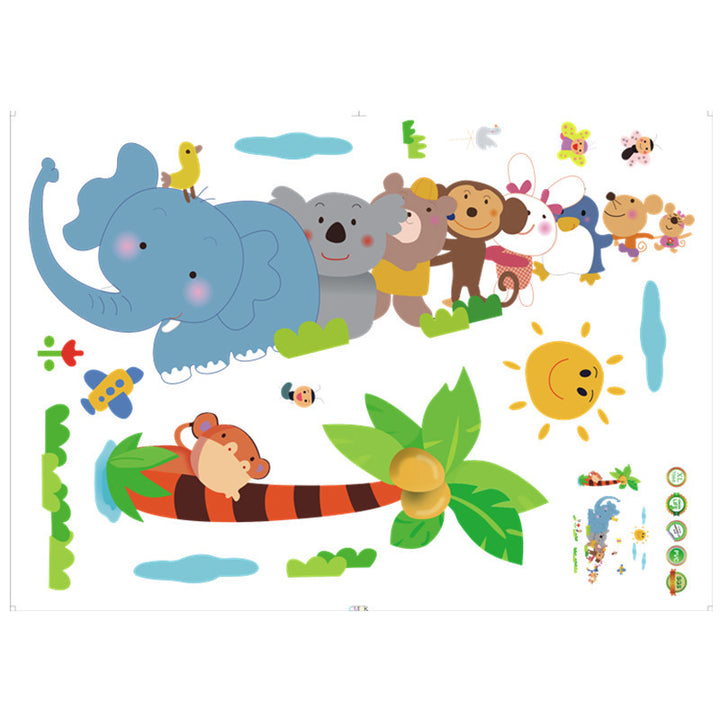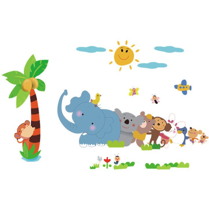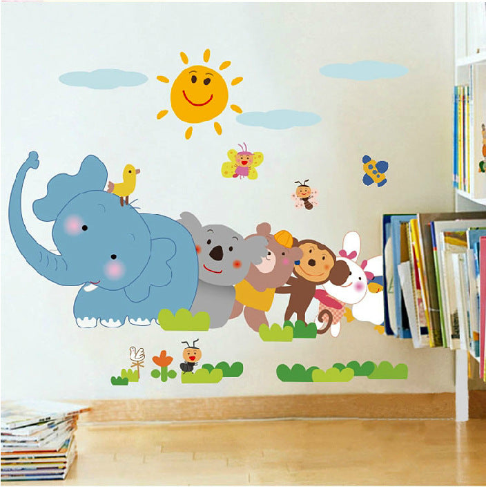 Cartoon animal wall sticker Living room children's room decorative sticker Removable self-adhesive happy animal wallpaper XL7066