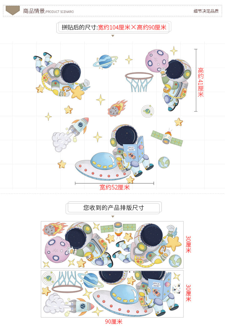 Cartoon astronaut wall sticker creative personality preschool early education class arrangement decorative sticker children's room male treasure wa...