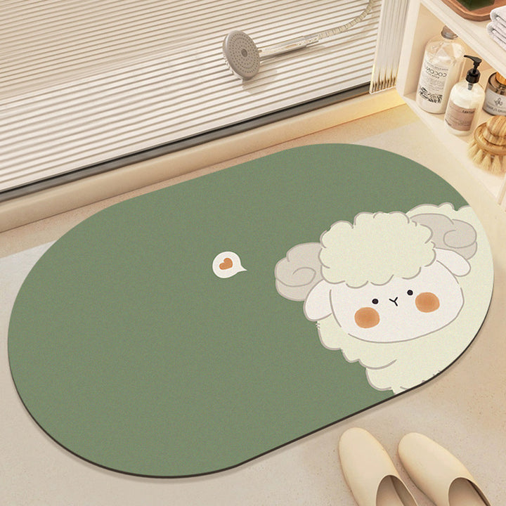 Cartoon bathroom absorbent floor mat, diatom mud cushion, quick-drying non-slip toilet door toilet floor mat, bathroom household