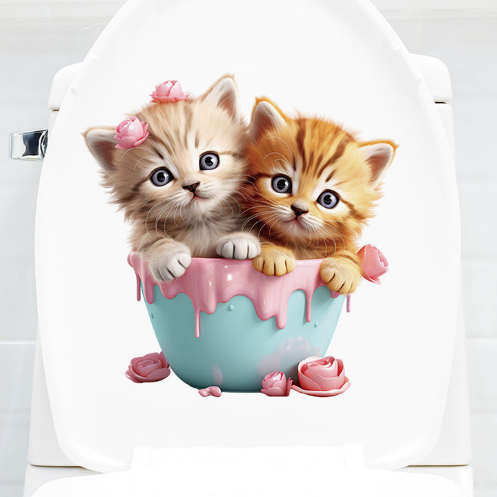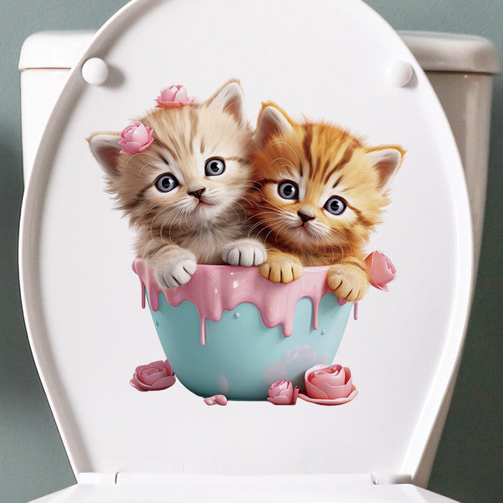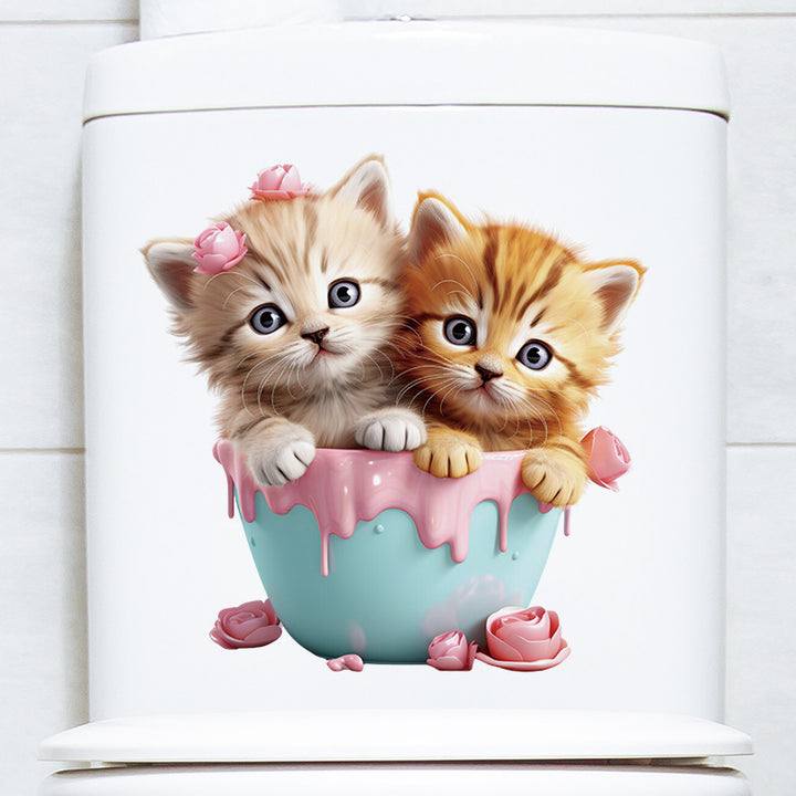 Cartoon cat bathroom toilet sticker toilet toilet seat decorative sticker toilet beautification pink jam toilet sticker