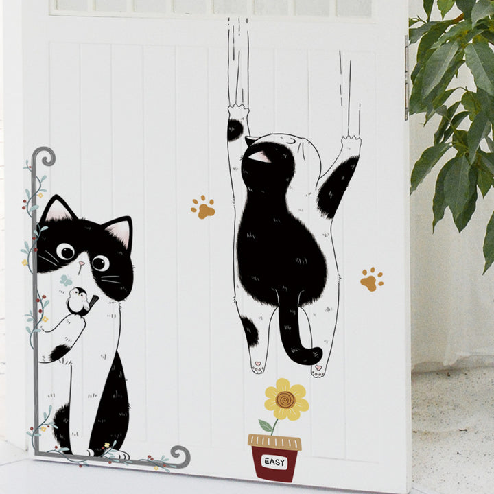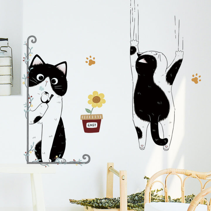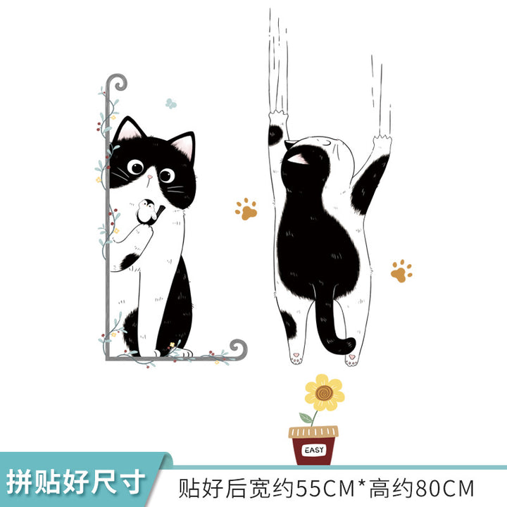 Cartoon cat wall sticker funny cute decorative sticker bedroom children's room pet store background wall sticker is not urgent