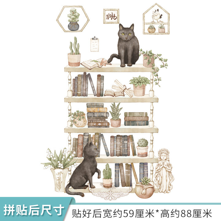 Cartoon children's room decorative sticker pet cat sticker bookshelf decorative sticker PVC small fresh life sticker