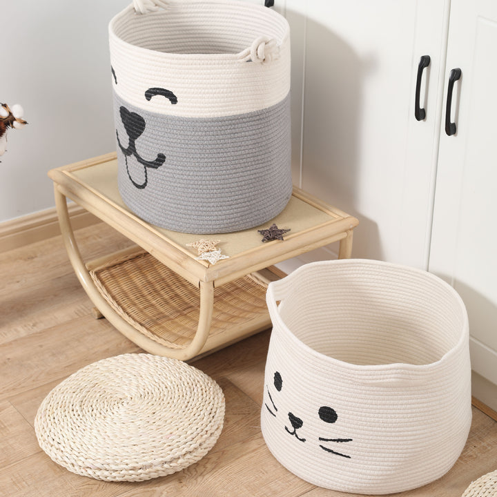 Cartoon cotton rope woven toy storage basket baby cat dog children's sundries basket large folding dirty clothes storage basket