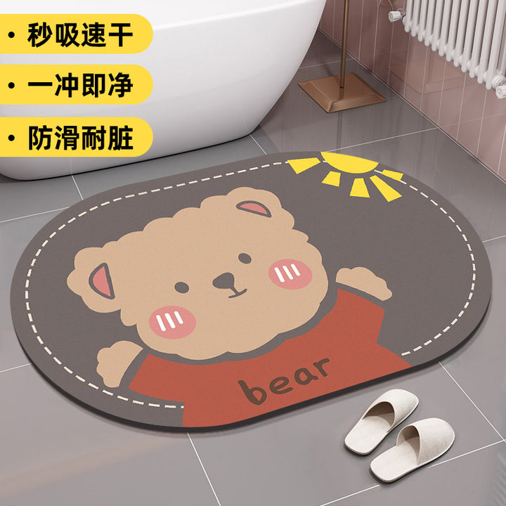Cartoon cute bathroom absorbent floor mat toilet entrance foot mat quick drying bathroom non-slip mat diatom mud cushion