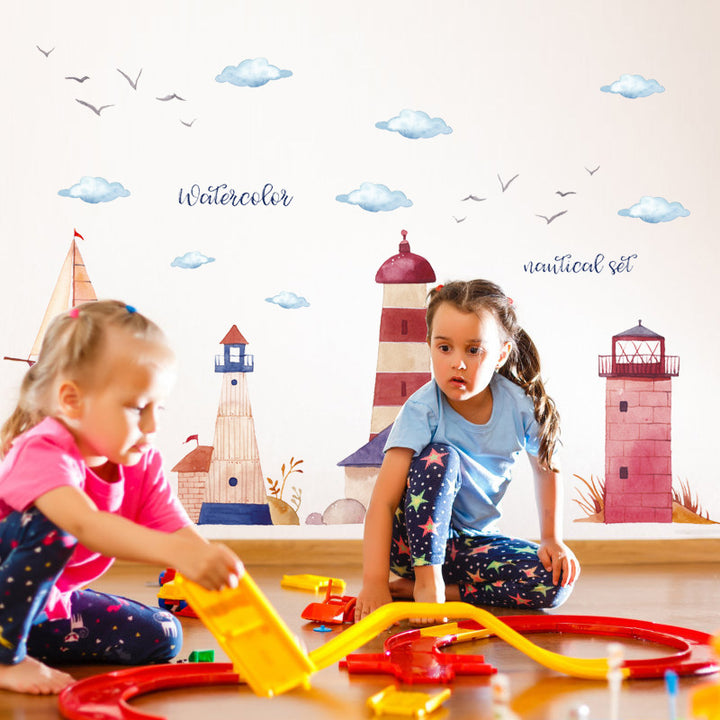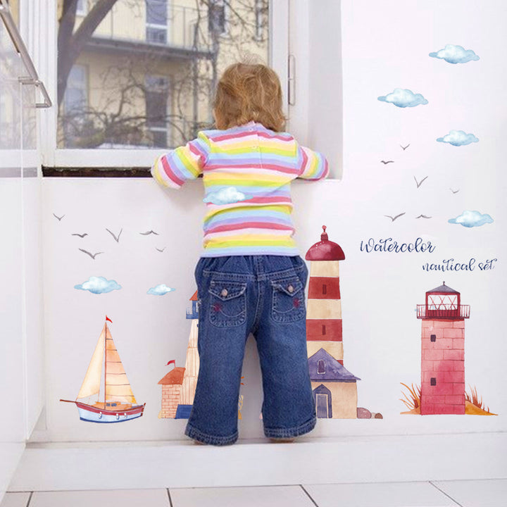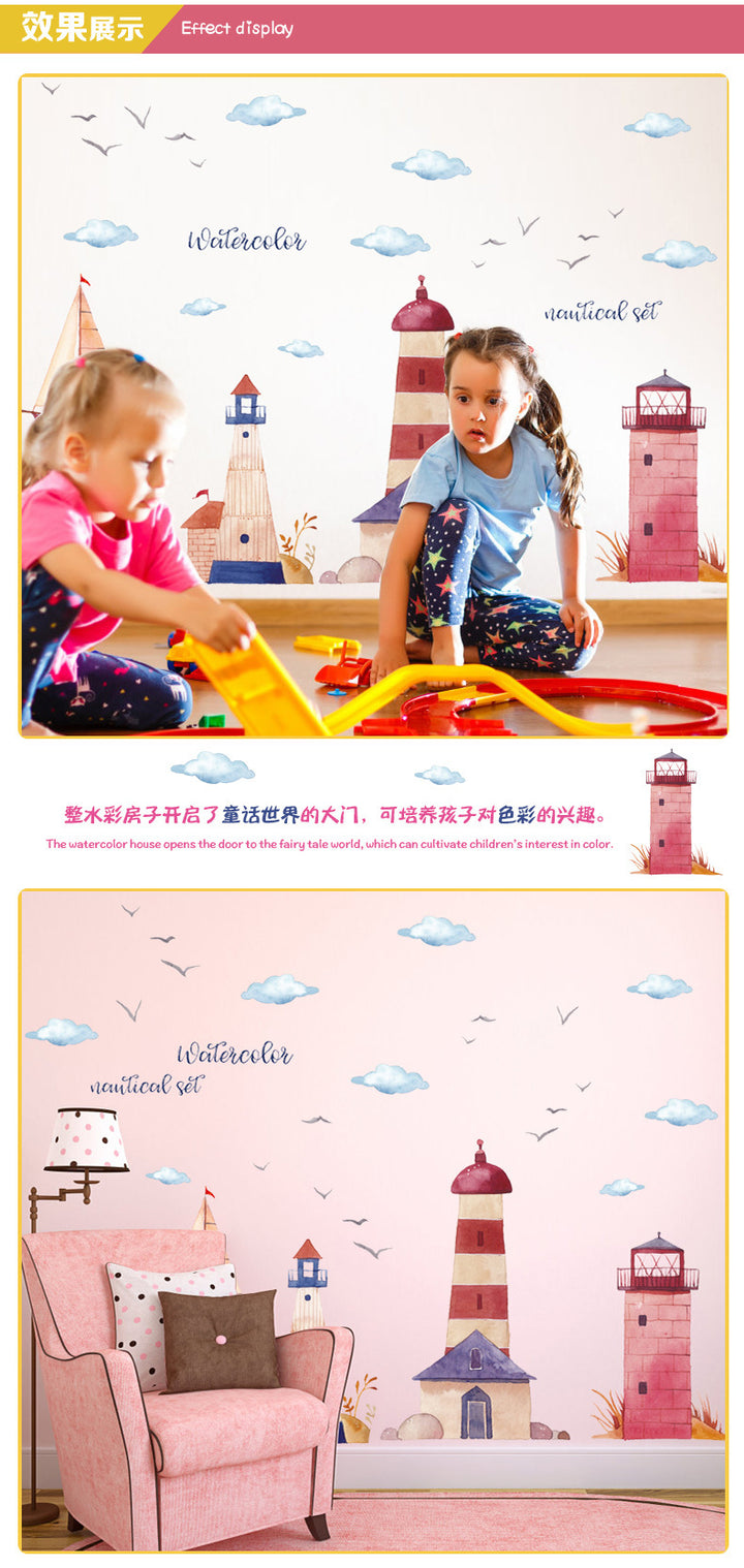 Cartoon hand-painted wall stickers, watercolor lighthouses, children's room, bedroom, kindergarten early education class decorative stickers HM92019